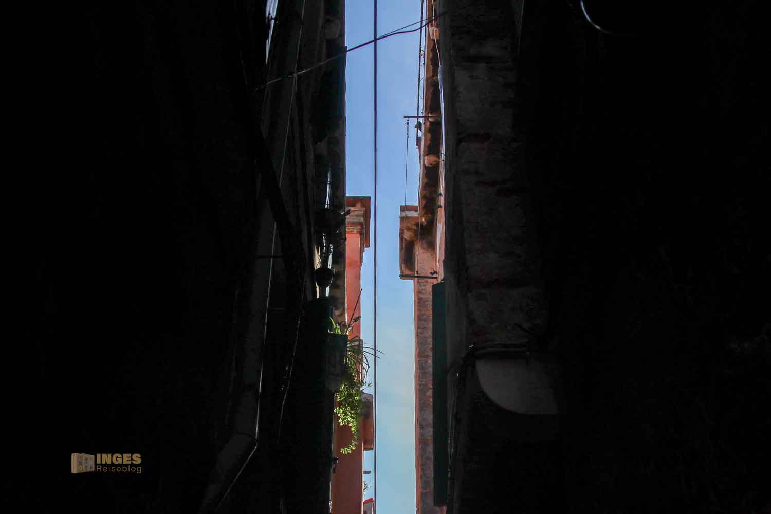 Wir haben sie auf dem Rückweg abgelaufen - eine winzige enge Gasse, die am Wasser endet. Ja, man muss in Venedig aufpassen, dass man sich nicht in solche 'Sackgassen', die am Wasser enden, verirrt. Wir sind sie bewusst gegangen, wie auch in einem anderen Stadtteil wo uns ein netter älterer Herr aufhalten wollte. Wild mit den Händen verneinend gestikulierend 'lauf da nicht' und rufend 'No! Aqua!!' hab ich ihm lächelnd erwidert 'lo so' (ich weiß). Das sind eben so Schnappschüsse, die für mich in Venedig ein Muss waren.
