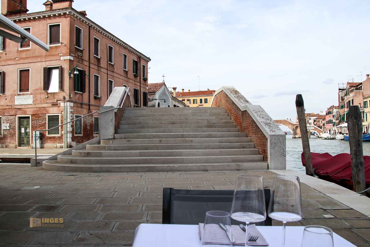 ist die zweite. Damit stand die Entscheidung an, weiter oder über die Brücke auf die andere Seite. Wir haben uns für die letztere Variante entschieden. So kommt man trockenen Fußes vom Fondamente S. Giobbe auf den Fondamenta Cannaregio.