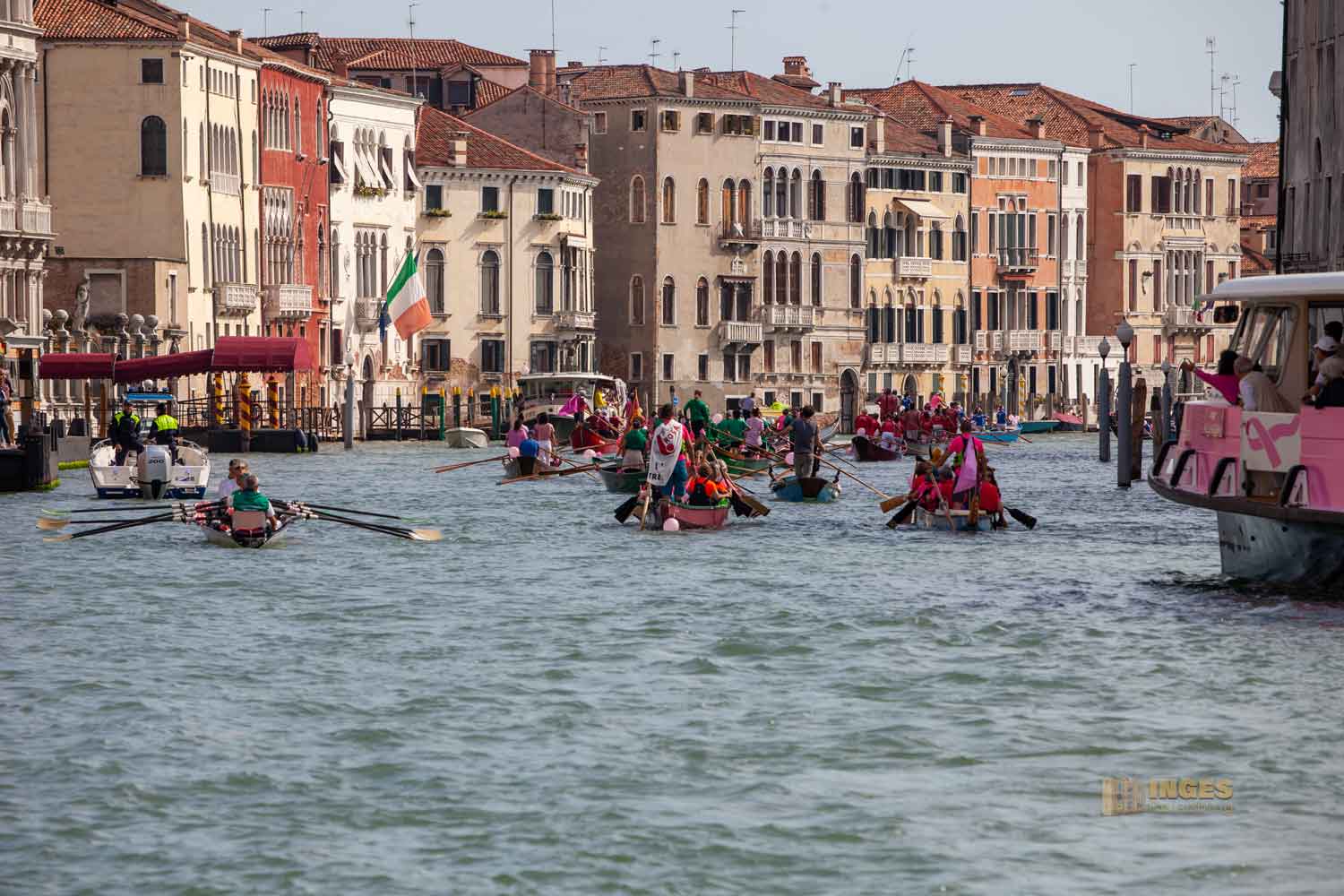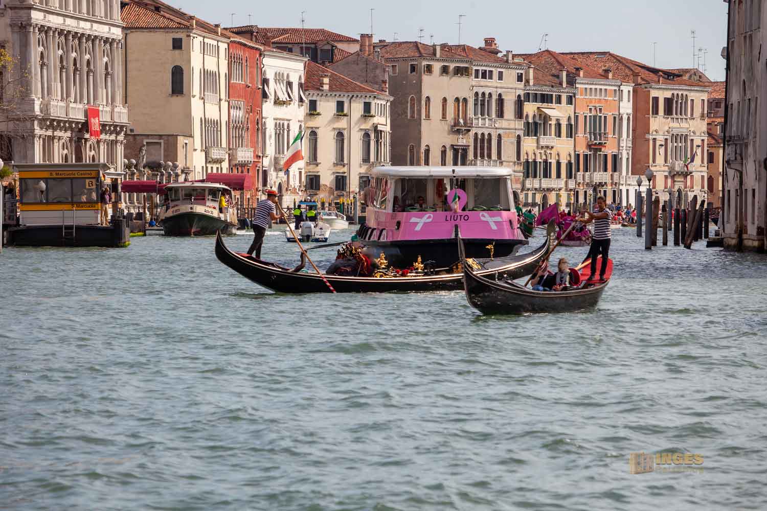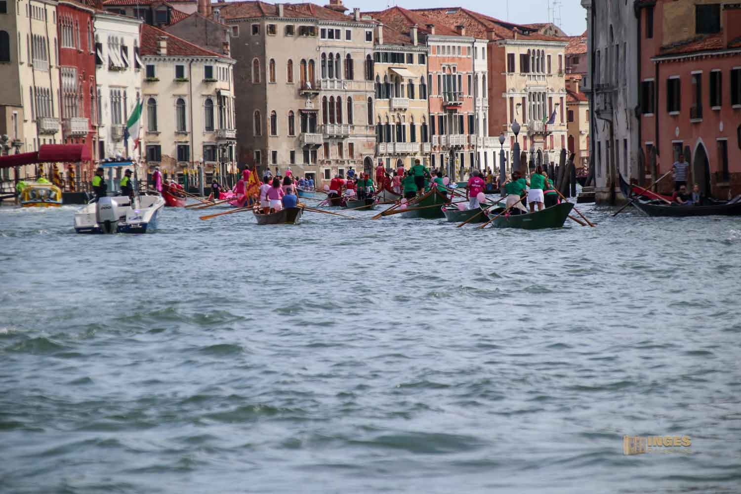 Es hat natürlich seinen Grund, warum der Hl. Nepomuk in Venedig einen Ehrenplatz bekam. Er ist der Schutzpatron der Schiffer und Brücken. An diesem Platz hat er auch immer richtig viel zu schauen. Direkt neben ihm hatte ich den Blick auf eine kleine Regatta die sich auf dem Canal Grande abspielte und alle Vaporetti ausbremste. Auch die Gondoliere hatten gut zu tun an dem Vormittag. Ist gar nicht so einfach da auf und quer über dem Kanal zu schippern.