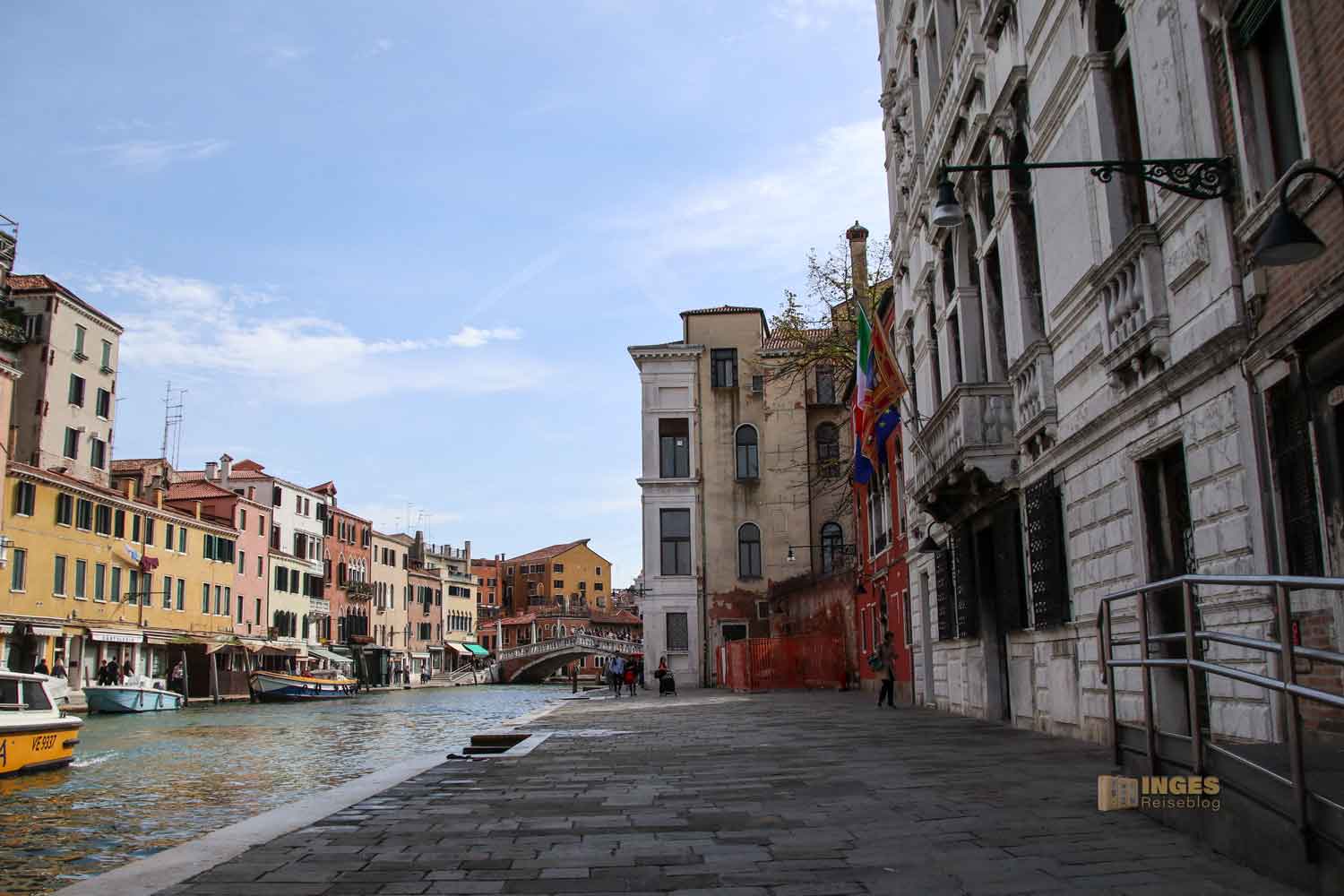 Während man am Canal Grande nicht zu Fuß entlang spazieren kann, ist dies beim Canale di Cannaregio bis auf ein kleines Stück möglich. Vom Hl. Nepomuk bietet sich