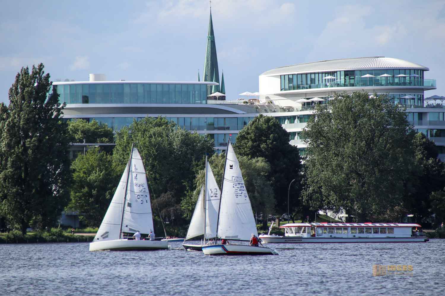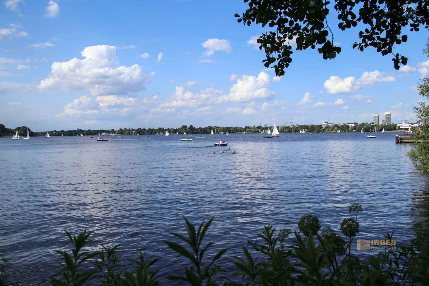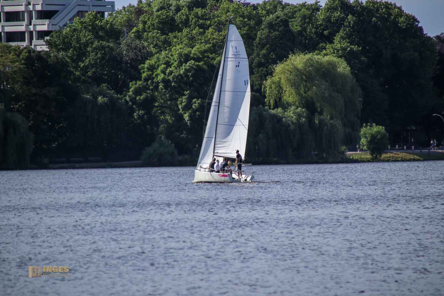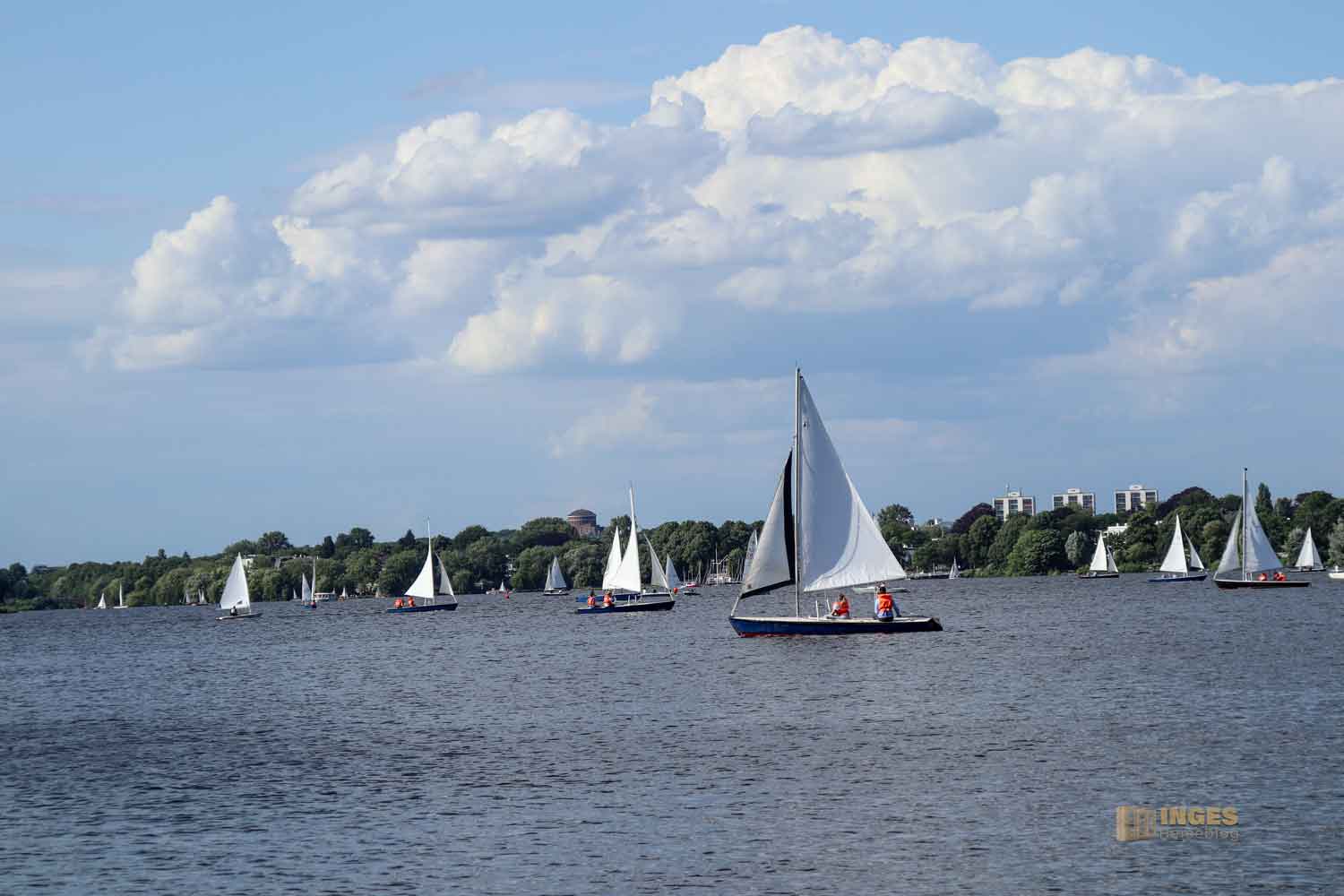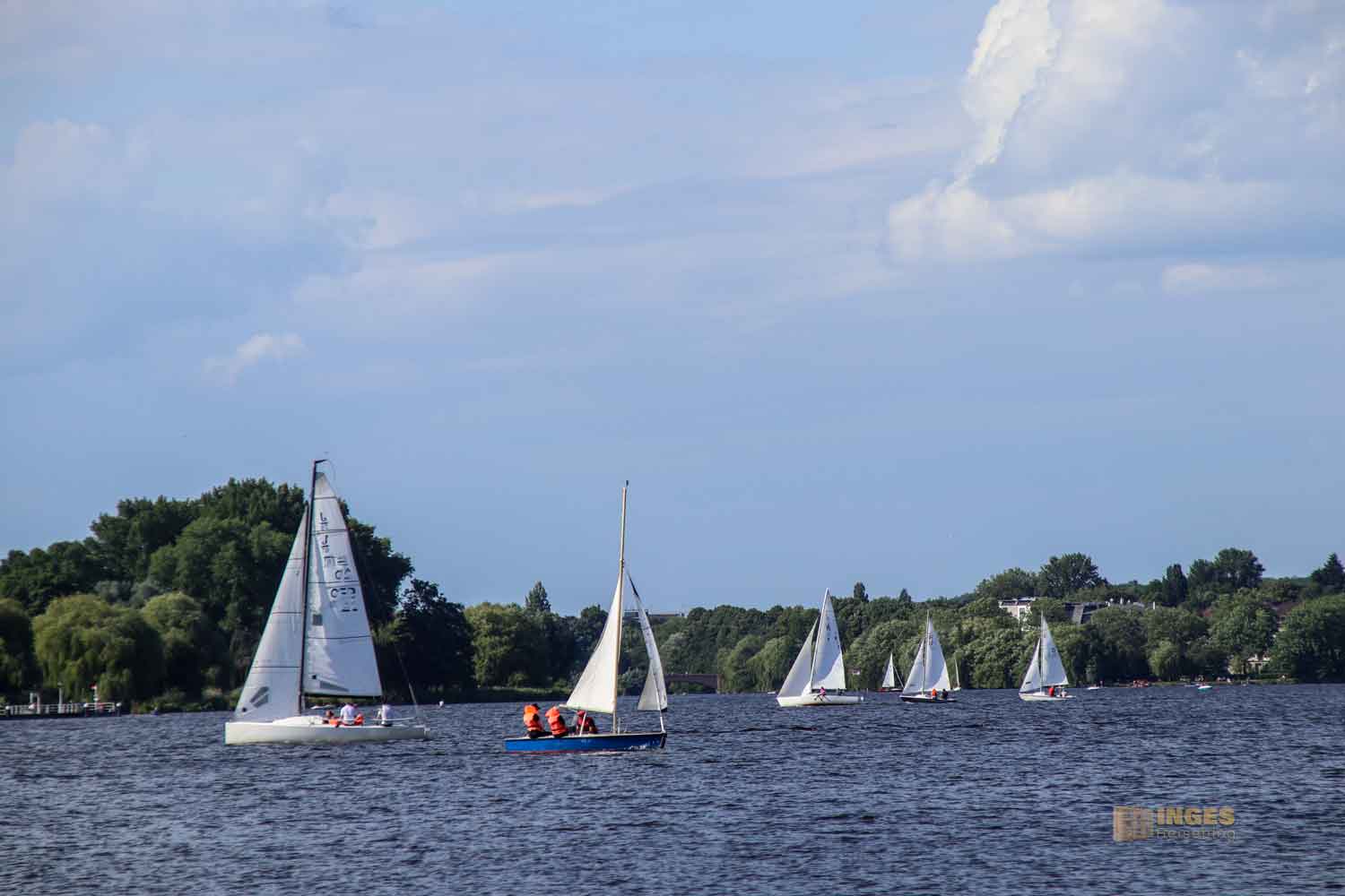 Während die Binnenalster nur etwa 18 Hektar groß ist und für den Schiffsverkehr, außer den Alsterrundfahrten, gesperrt ist, darf man sich auf der Ausßenalster auf ca. 164 Hektar Größe so richtig austoben. Bis zu 4,5 Meter tief kann der See an manchen Stellen sein.