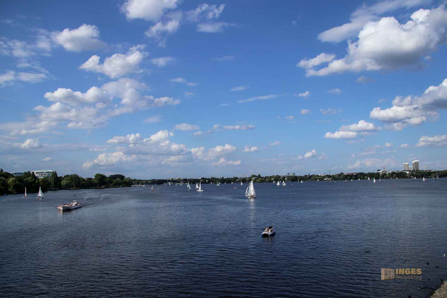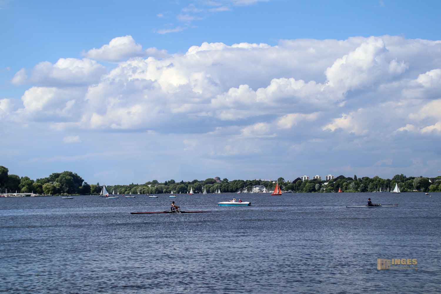 Erholung bietet die Hansestadt Hamburg gleich an mehreren Stellen - ein beliebtes Ziel ist die Außenalster unweit der Innenstadt.