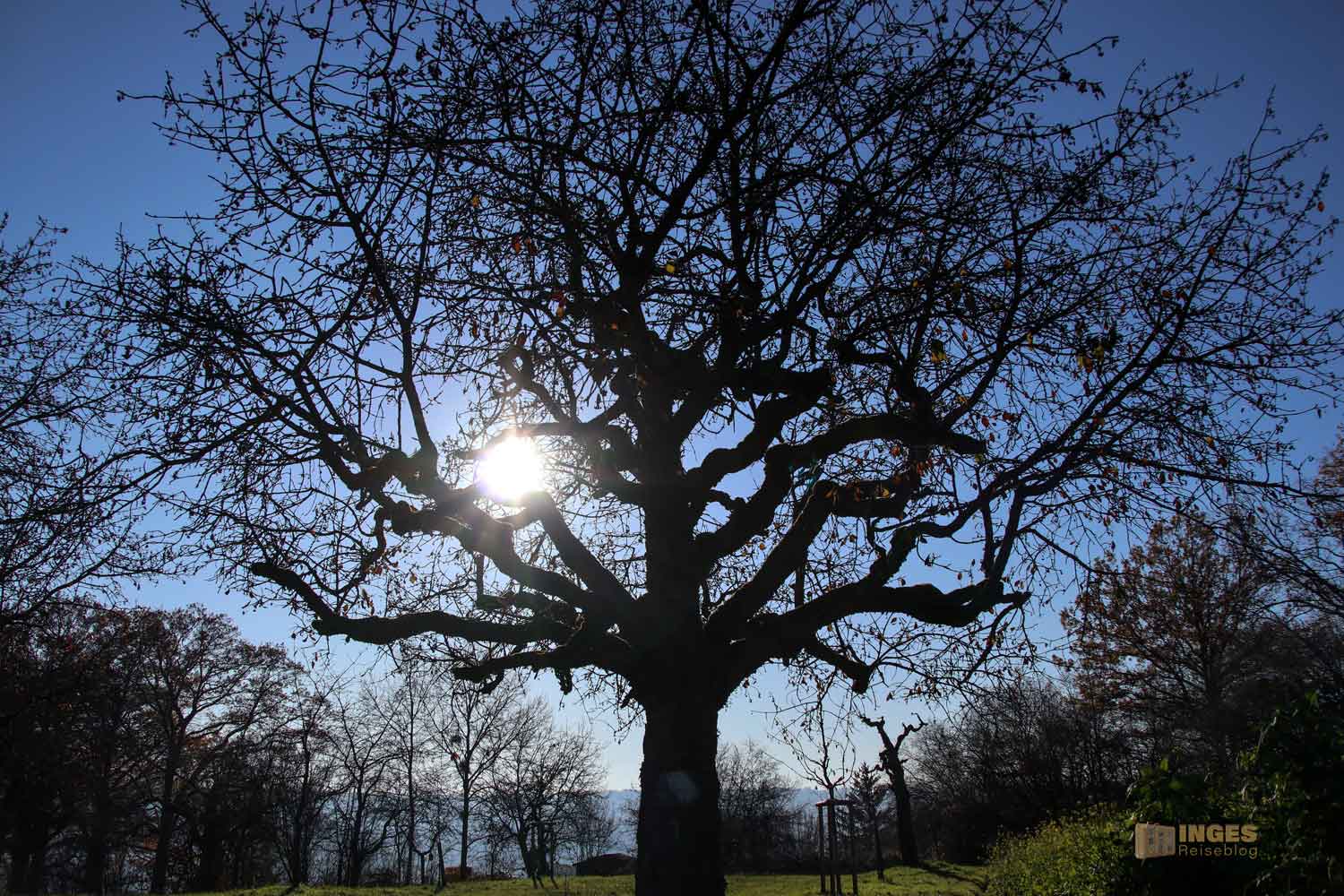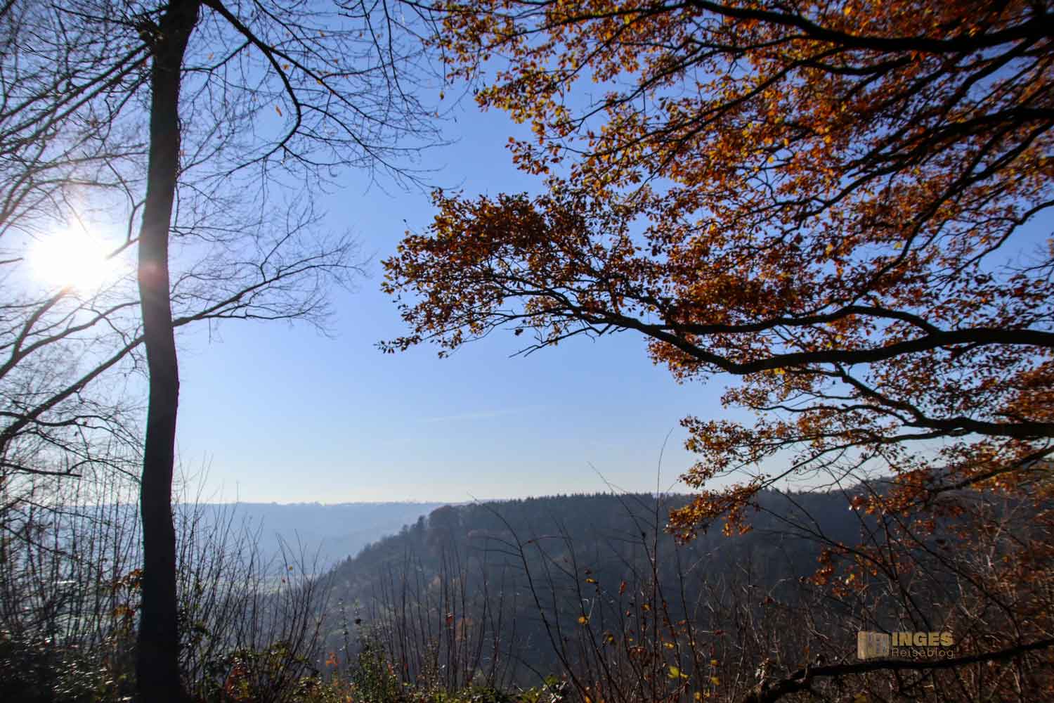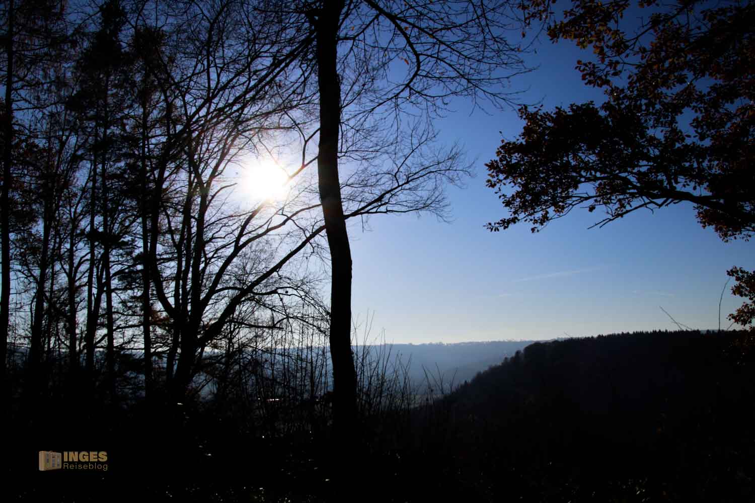 Eigentlich konnte man die Blicke nur erahnen, die Sonne hüllte die Sicht in einen 'Sonnennebel'. Und mit freier Sicht das Tal hinunter, ist von da oben auch nicht so viel, denn unser Remstal ist halt einfach nicht so flach wie das platte Land im Norden 🙂