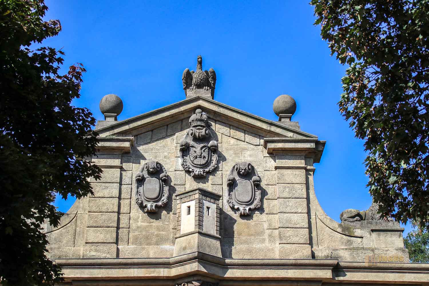 Dieses Tor, eines von den beiden, wo man mit dem Auto in den großen Park-Komplex kommt, wurde so um 1640 errichtet. Den Namen erhielt die damalige Polizeiwache, weil es die Zufahrtsstraße nach Prag überwachte, die u.a. auch von Tábor herführte.
