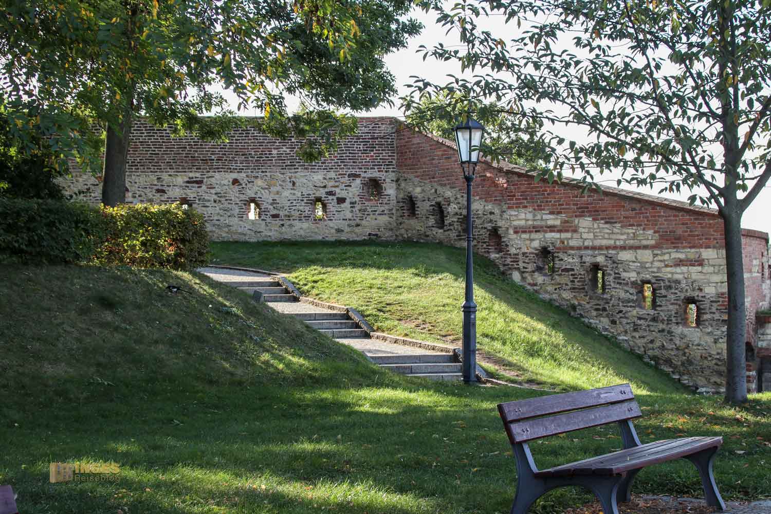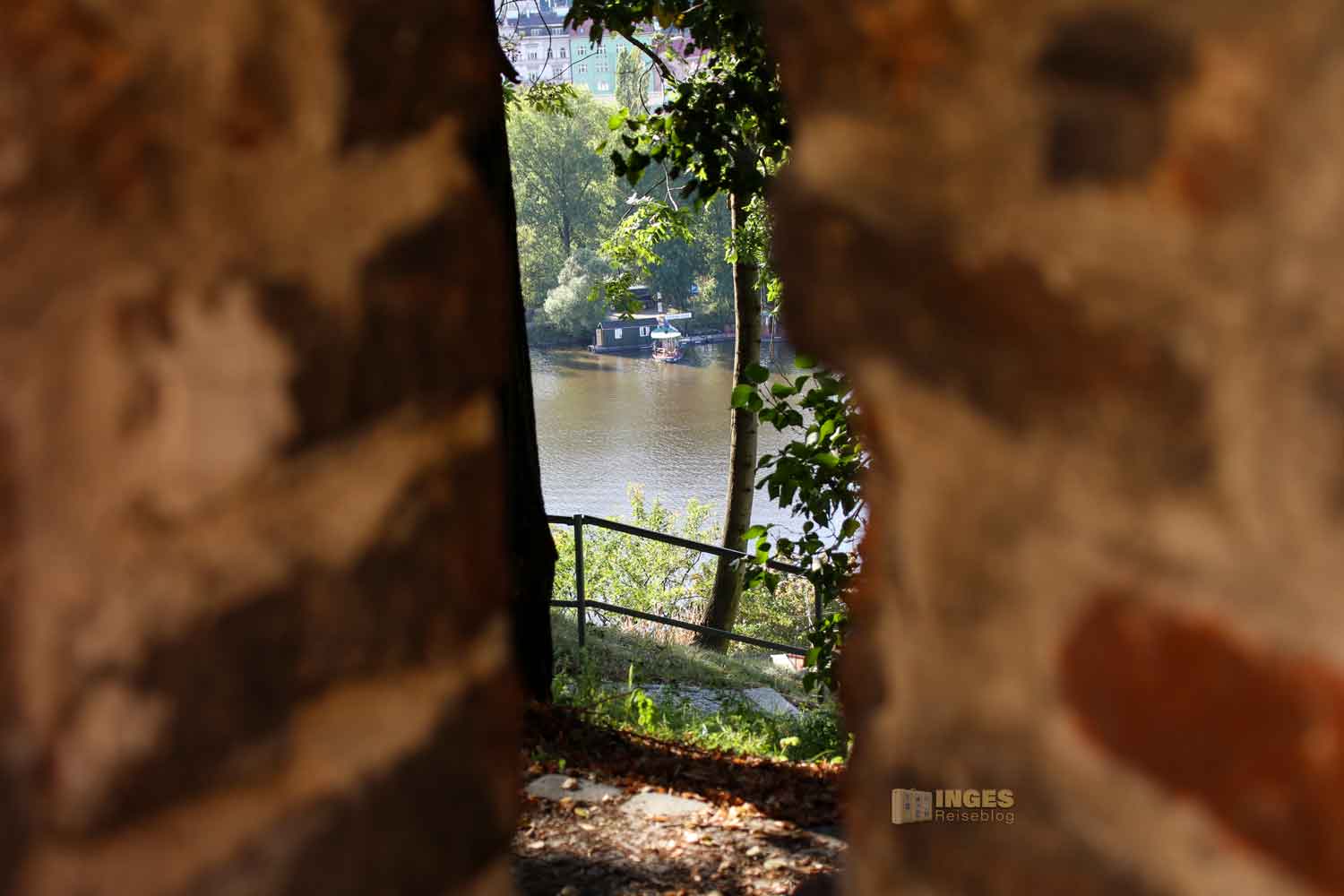 Tja, und jetzt musste ein Plan her, wie wir was in dem weitläufigen Gelände abarbeiten. Wir haben uns für eine nördliche Erkundung der Festung entschieden. Auch aus dem Grund, weil der Vyšehrad von dieser Seite her einen wunderschönen Blick auf die Prager Neustadt bis hinüber zur Prager Burg und den Berg Petrin bietet. Auf diesen Rundgang, der bei der