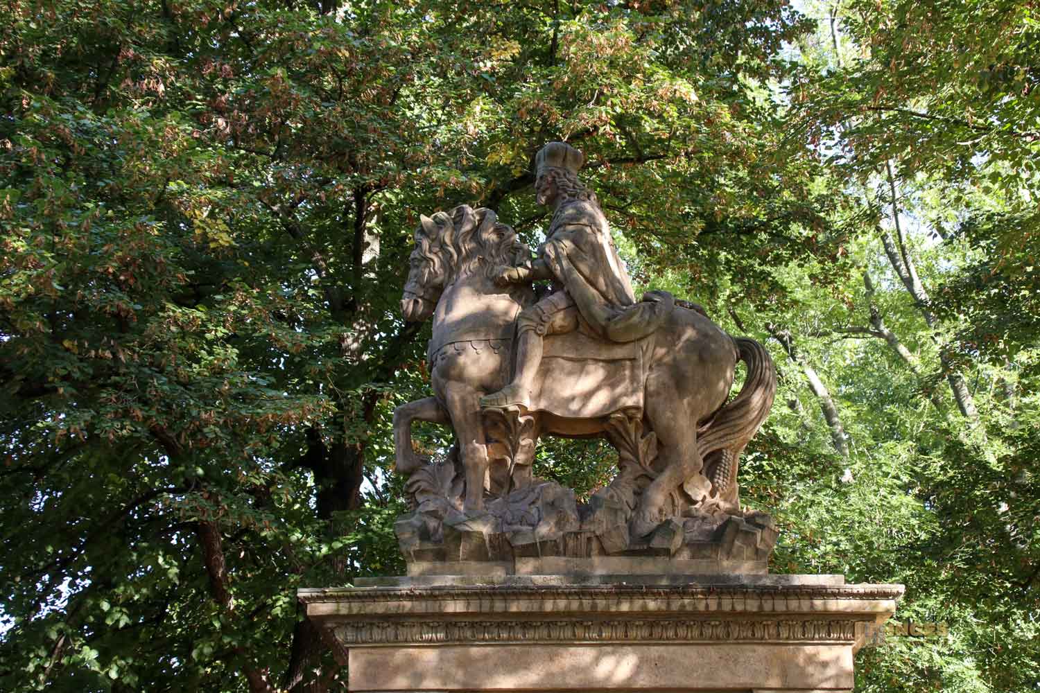 Das erste, eben dieses vom Vyšehrad, wurde 1680 errichtet und hatte seinen Platz auf dem Rossmarkt. So hieß der Wenzelsplatz zur damaligen Zeit. 1879 durfte das barocke Denkmal dann aber auf den Felsenberg umziehen. Mittlerweile wurde es in dem kleinen Park durch eine Kopie ersetzt, das Original steht im Nationalmuseum.