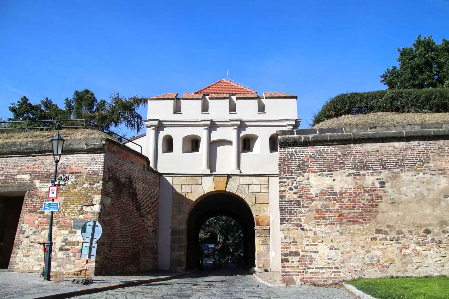 Die Metro brachte uns zur Haltestelle gleichen Namens, und nach knapp 10 Minuten gemütlichen Fußmarsches kamen wir am ersten Tor des Vyšehrad an.