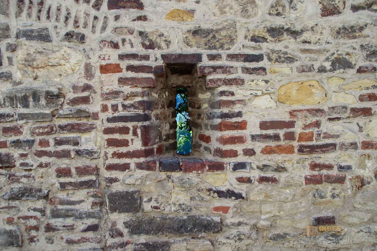 Jetzt, da sie bleiben durfte, wurde sie dann 1875 renoviert und aufgehübscht. Ihr Eingang wurde von West nach Süd verlegt. Man kann sagen - klein, aber oho. Im Durchmesser ist sie nämlich nur 6,5 Meter, die Apsis hat nur eine Tiefe von 2,20 Meter - aber sie hat eine dicke Hülle. Die Mauern um diese Kostbarkeit sind so rund 96 cm dick.