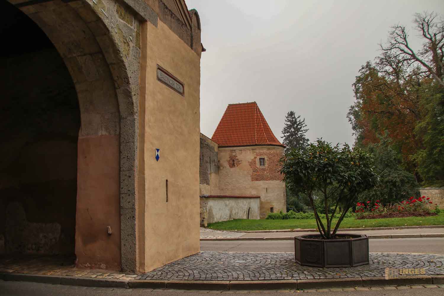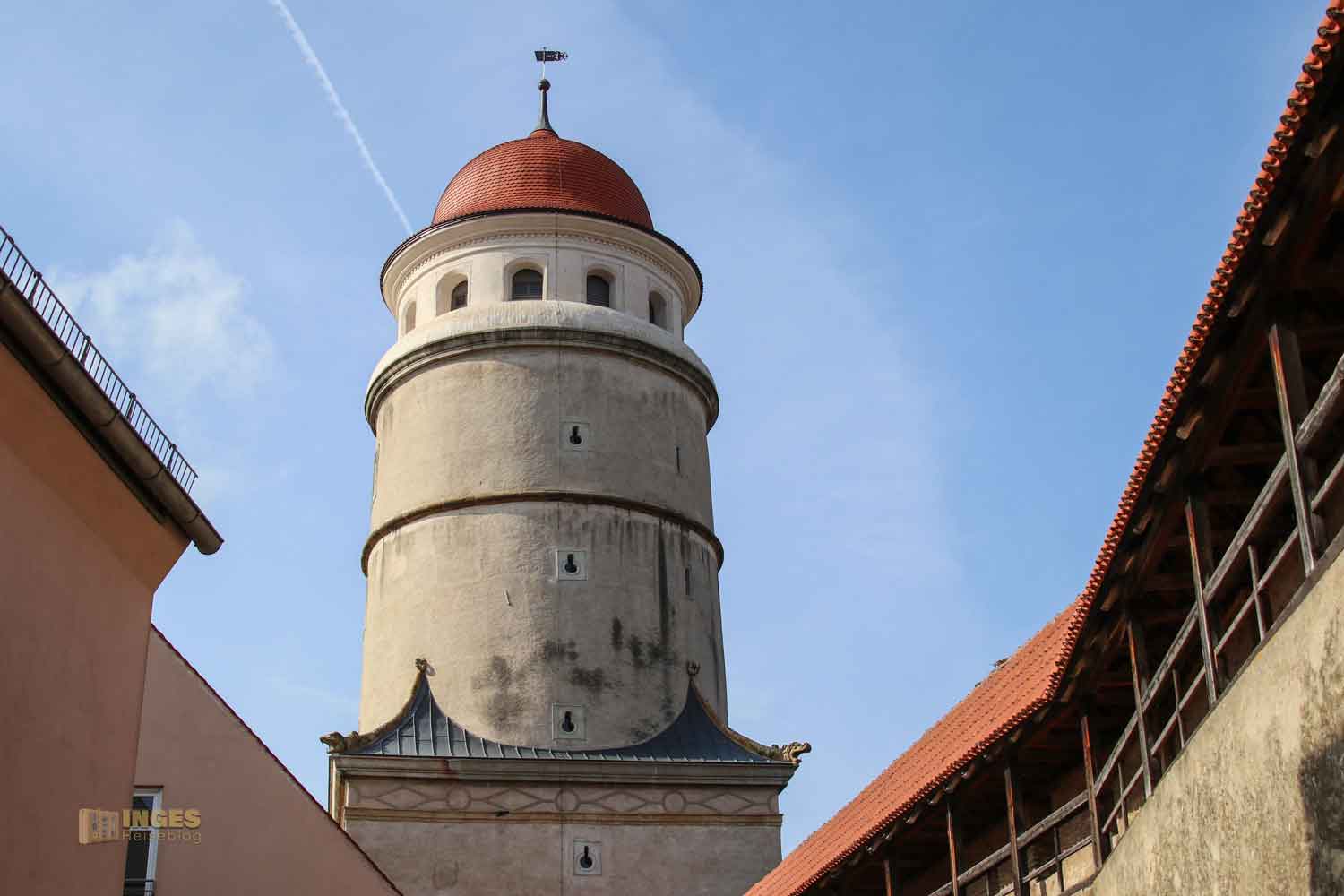Am Unteren Wasserturm geht es richtig romantisch zu. Ganz in der Nähe befindet sich die Neumühle, die ihr in meinem Stadtrundgang näher kennenlernt. Und wie es bei Mühlen so üblich ist, gibt es da auch Wasser, nämlich die Eger. Etwa um 1440 wurde der Wasserturm gebaut, denn bis dato war mit der Öffnung in der Stadtmauer, damit die Eger fließen konnte, eine Schwachstelle in der Verteidigung.