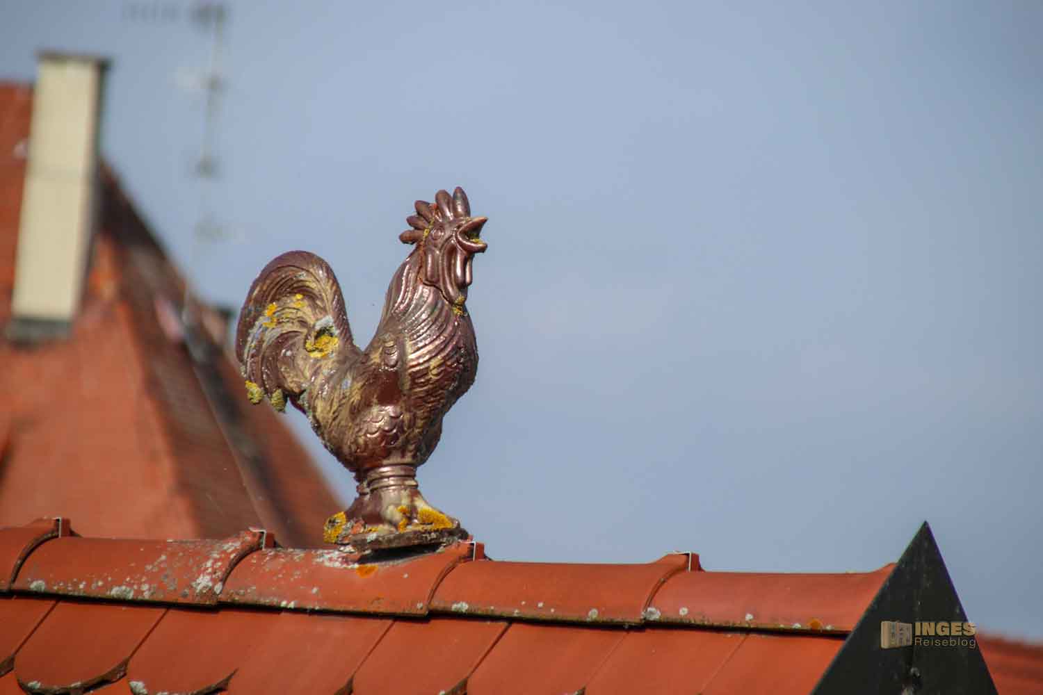 Aber es hatte sich eingebürgert, dass sich die Türmer alle Stunde "So, G'sell, so" zurufen. Ich stelle mir gerade vor, wie dieser Spruch jede Stunde die Runde um die Stadt macht. Auch hier in Nördlingen sieht man, dass aus solchen früheren Begebenheiten Traditionen werden. So wie in Dinkelsbühl ein Mädchen die Stadt vor den schwedischen Truppen gerettet hat und dies in der Dinkelsbühler Zeche gefeiert wird, so steht in Nördlingen beim Historischen Stadtmauerfest diese Legende im Mittelpunkt. Das Schwein von damals würde sich bestimmt auch freuen, wüsste es, dass es einen Gedenktag erhielt, an dem bis ins 18. Jahrhundert jährlich eine "Saupredigt" gehalten wurde. Ich überlege mir gerade, ob das Schwein dank seiner unbewussten guten Tat vor der Pfanne verschont wurde und sich seines Lebens freuen durfte?
