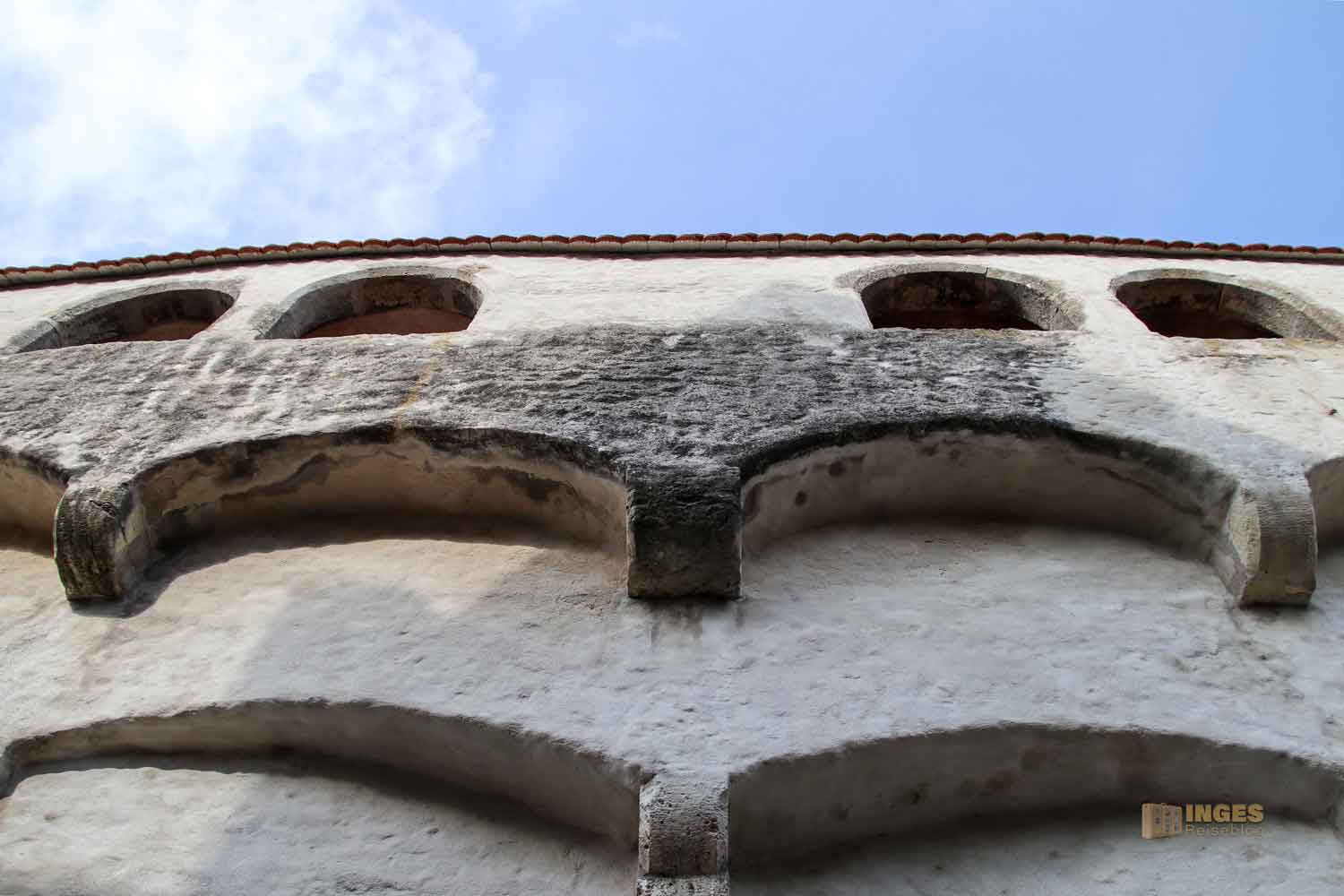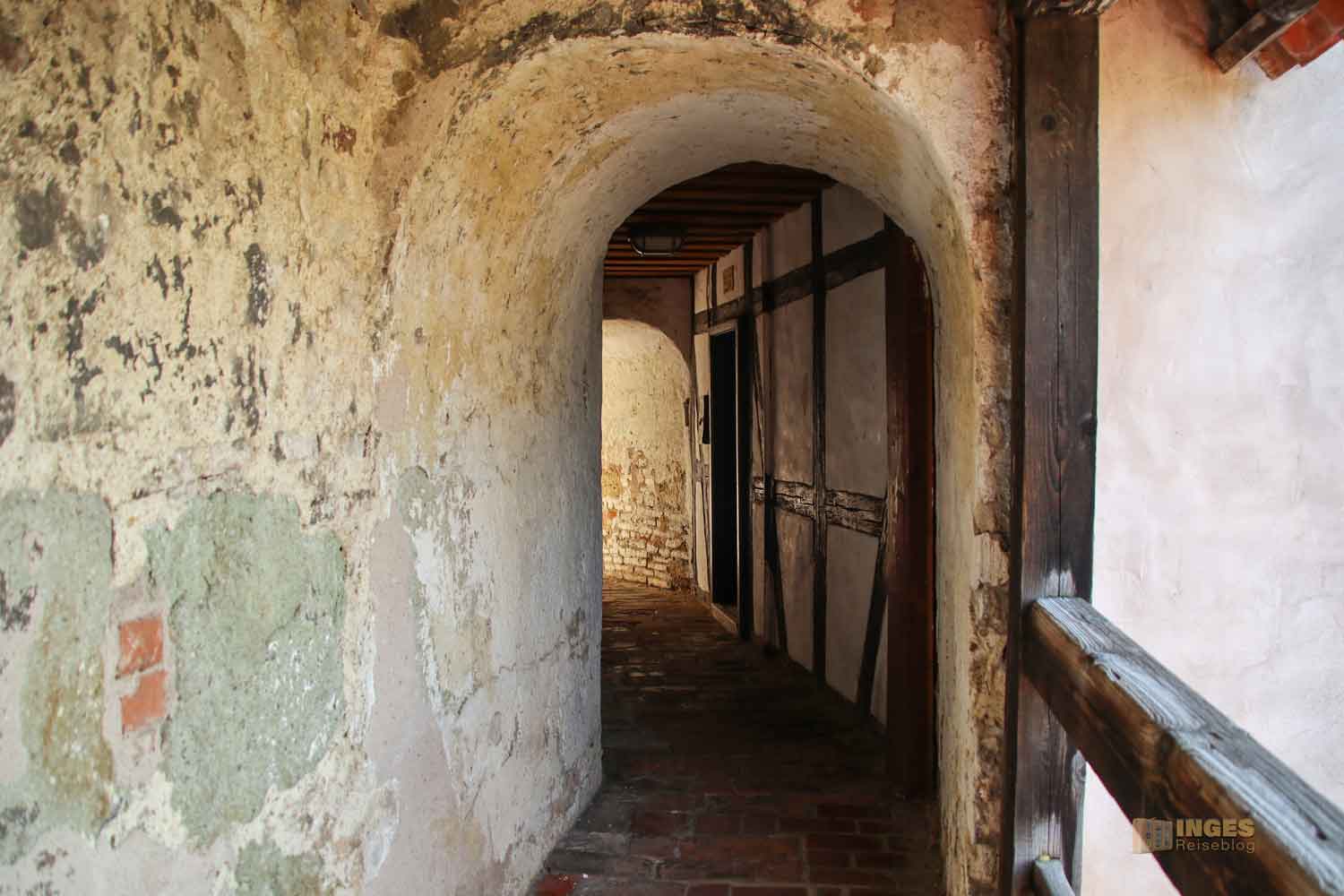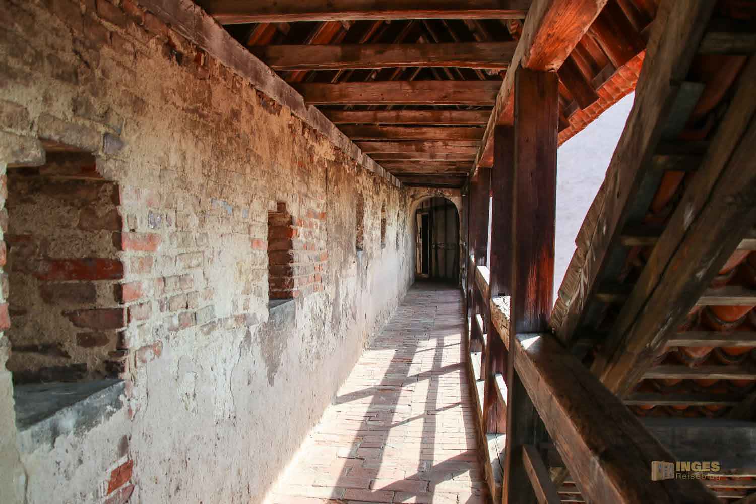 Immer wieder erreicht man über Treppen den Wehrgang, den wir beim