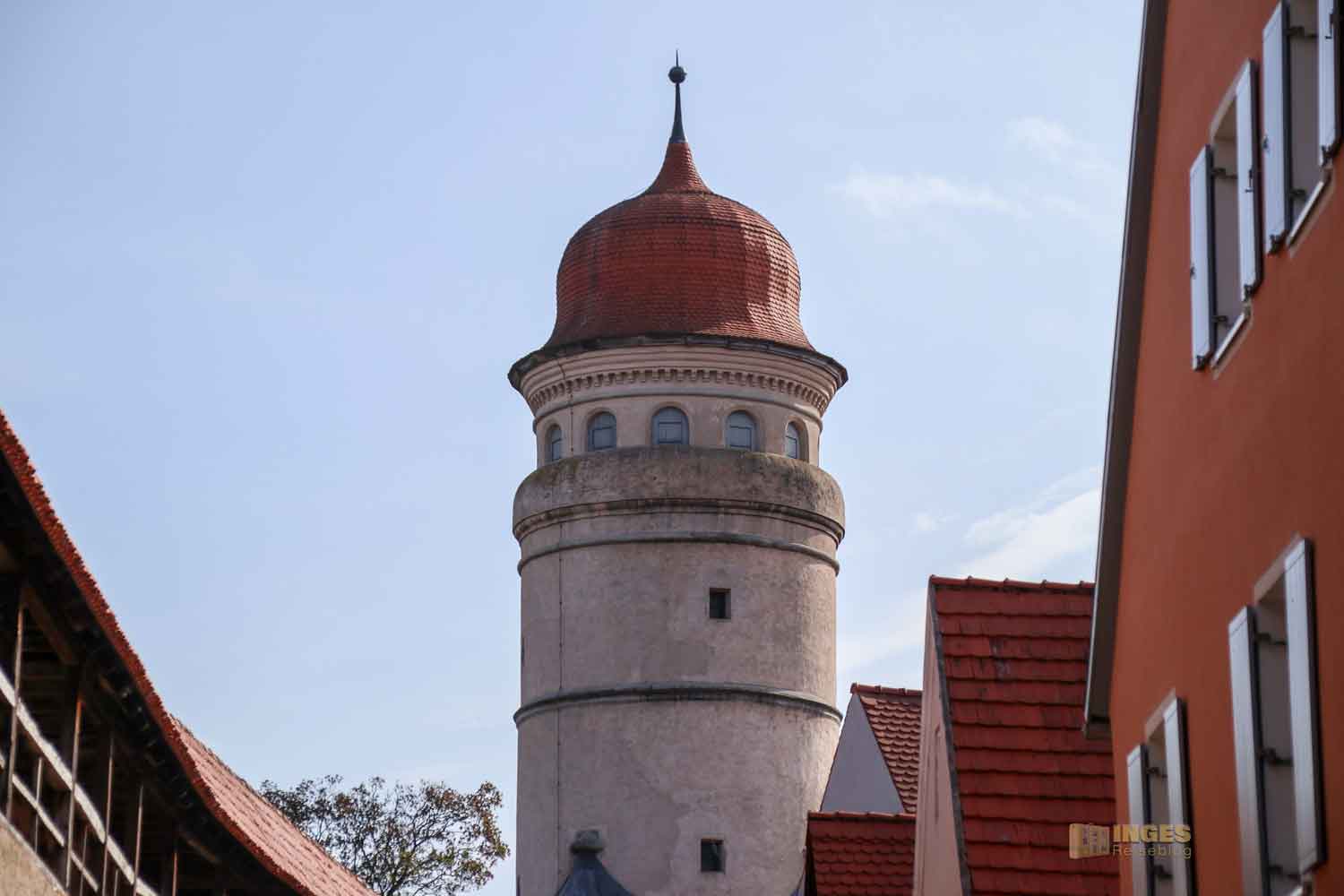 angekommen. Der runde Turm entstand im 14. Jahrhundert, wurde anschließend aber auch für sein heutiges Aussehen verändert. Von Wien und Regensburg kam man auf dieser Straße in die Stadt und die Wächter hatten viel zu tun bei diesem Tor. War es doch oft Angriffen ausgesetzt. 1634 konnten kaiserliche Truppen während des Dreißigjährigen Krieges den Torturm besetzen und sich dort niederlassen. Damit die Nördlinger aber weiter die Stadt verteidigen konnten, setzten sie ihren eigenen Turm kurzerhand in Brand. Tja, wie soll man die Angreifer auch sonst hinaus bekommen? Da ist wohl jedes Mittel der Wahl recht. Ab 1645 wurde der Turm wieder aufgebaut und erhielt unter seiner geschwungenen Haube den runden Aufbau mit zwölf Fenstern.