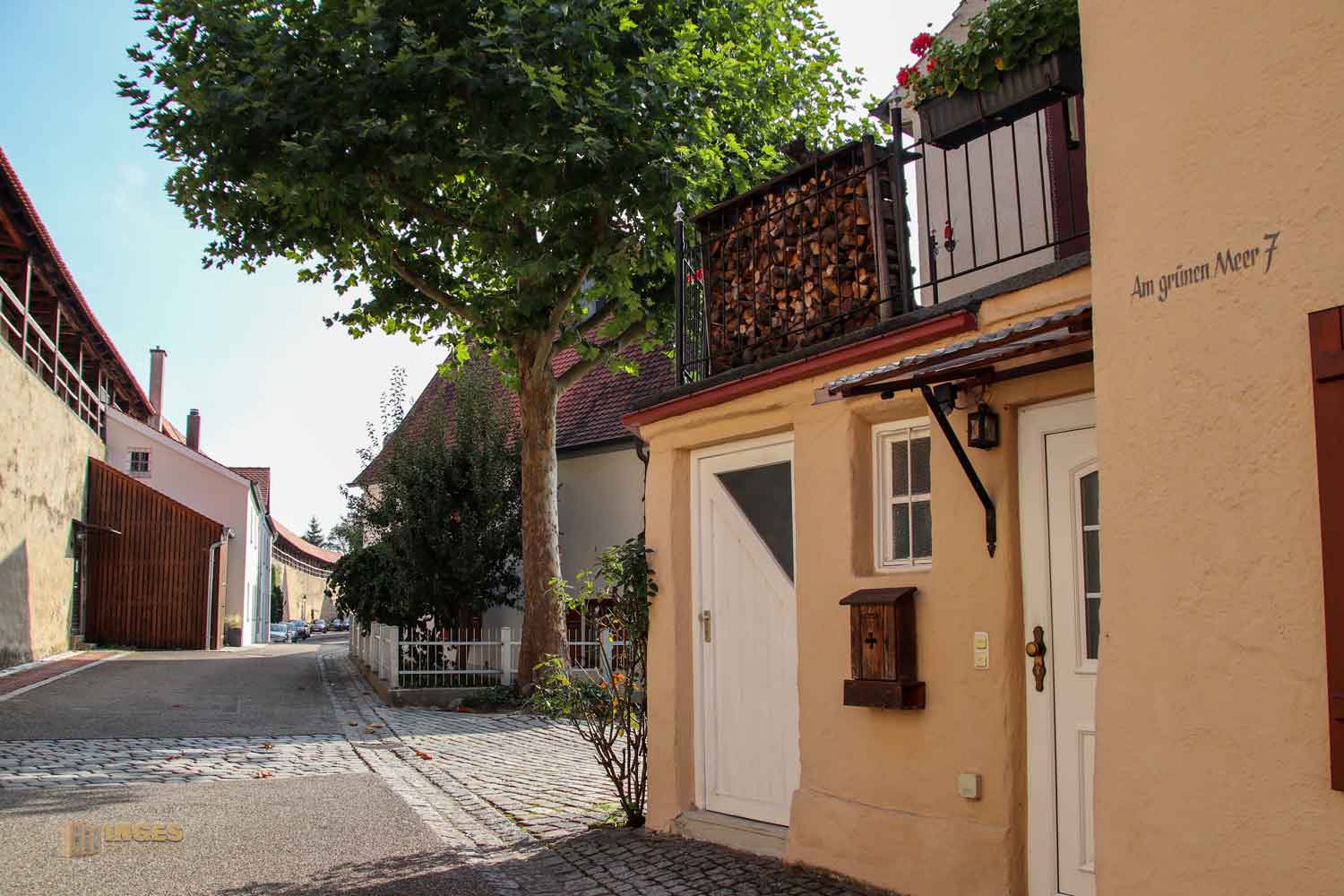 Liebevoll sind die kleinen Fachwerkhäuschen renoviert und geschmückt. Die Bewohner wissen wohl, dass der Stadtmauerrundgang in Nördlingen begehrt ist. Wir waren an diesem Tag aber mal wieder sehr allein unterwegs. Was für uns, und vor allen in Corona Zeiten nicht nun wirklich nicht störend ist.