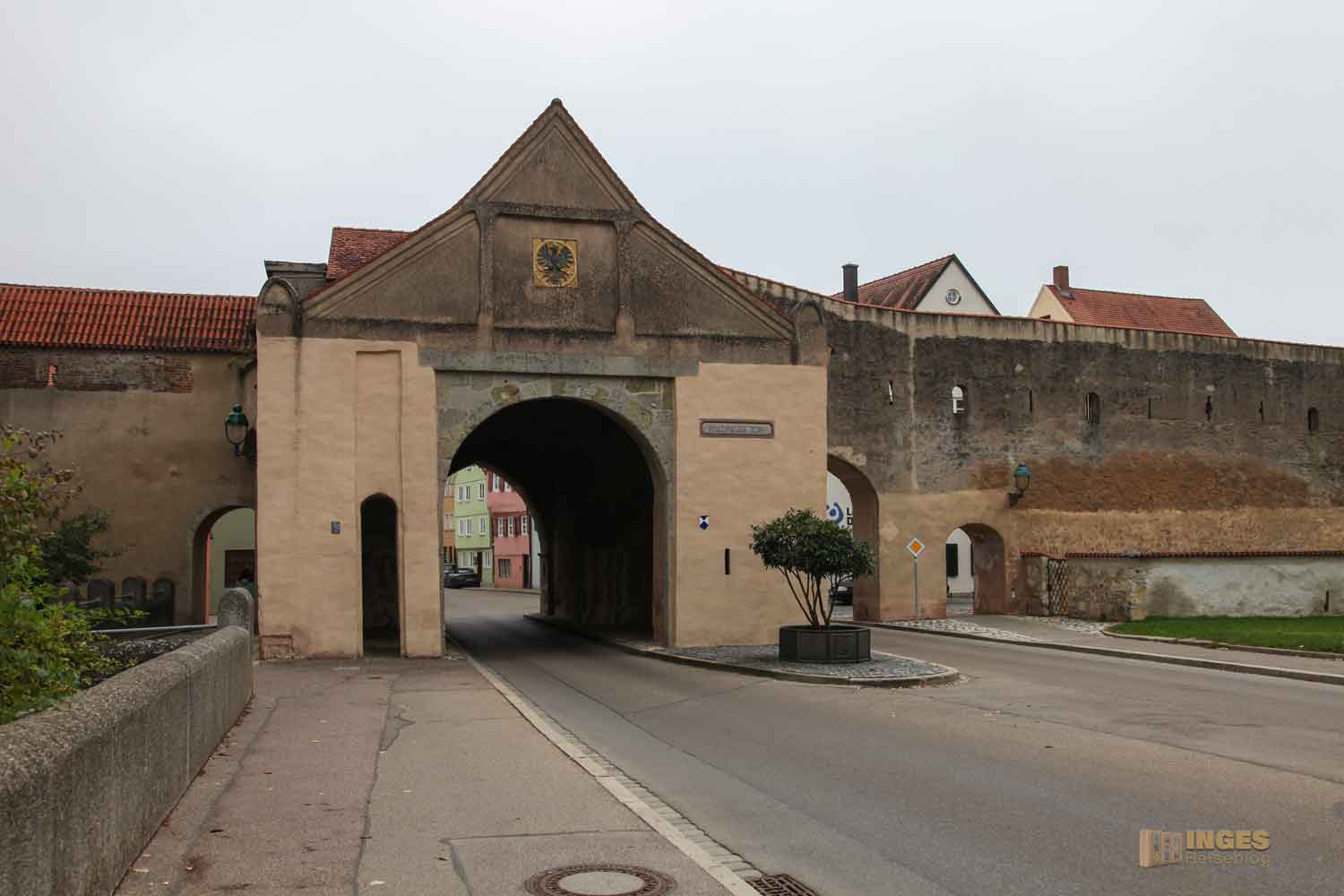 welches zu damaliger Zeit den Zugang zur Handelsstraße Via Imperii, die von Nürnberg nach Leipzig führte, sicherte, ist heute das Stadtmauermuseum untergebracht. Auf sechs Etagen im Turm erfahrt ihr viel Interessantes über die Stadtbefestigung von Nördlingen. 1388 wurde das Stadttor errichet, aber ca. 200 Jahre später durch einen neuen Bau ersetzt. Man muss schon genau hinschauen um das 42 Meter hohe Löpsinger Tor nicht mit dem Deininger Tor zu verwechseln.