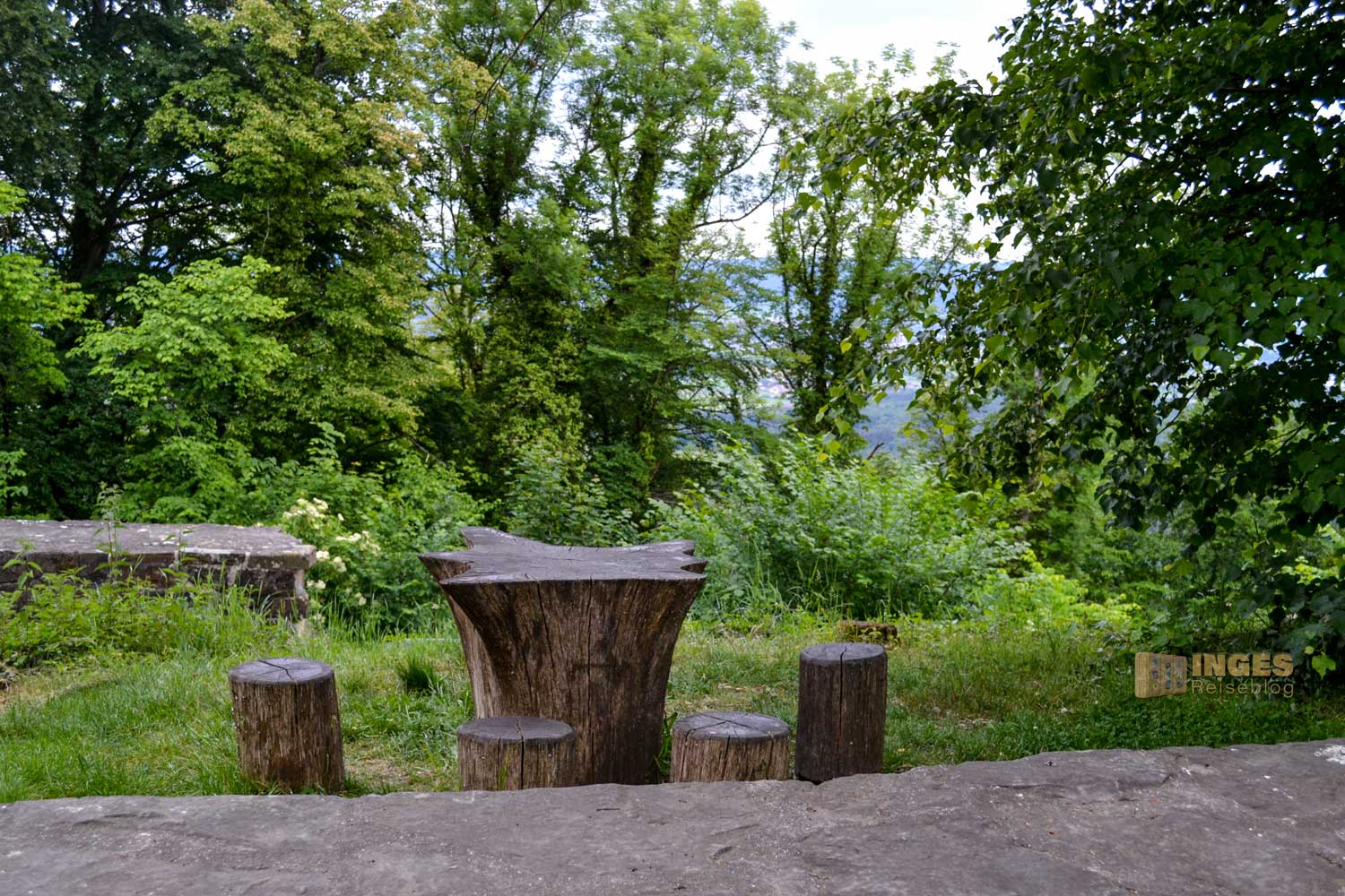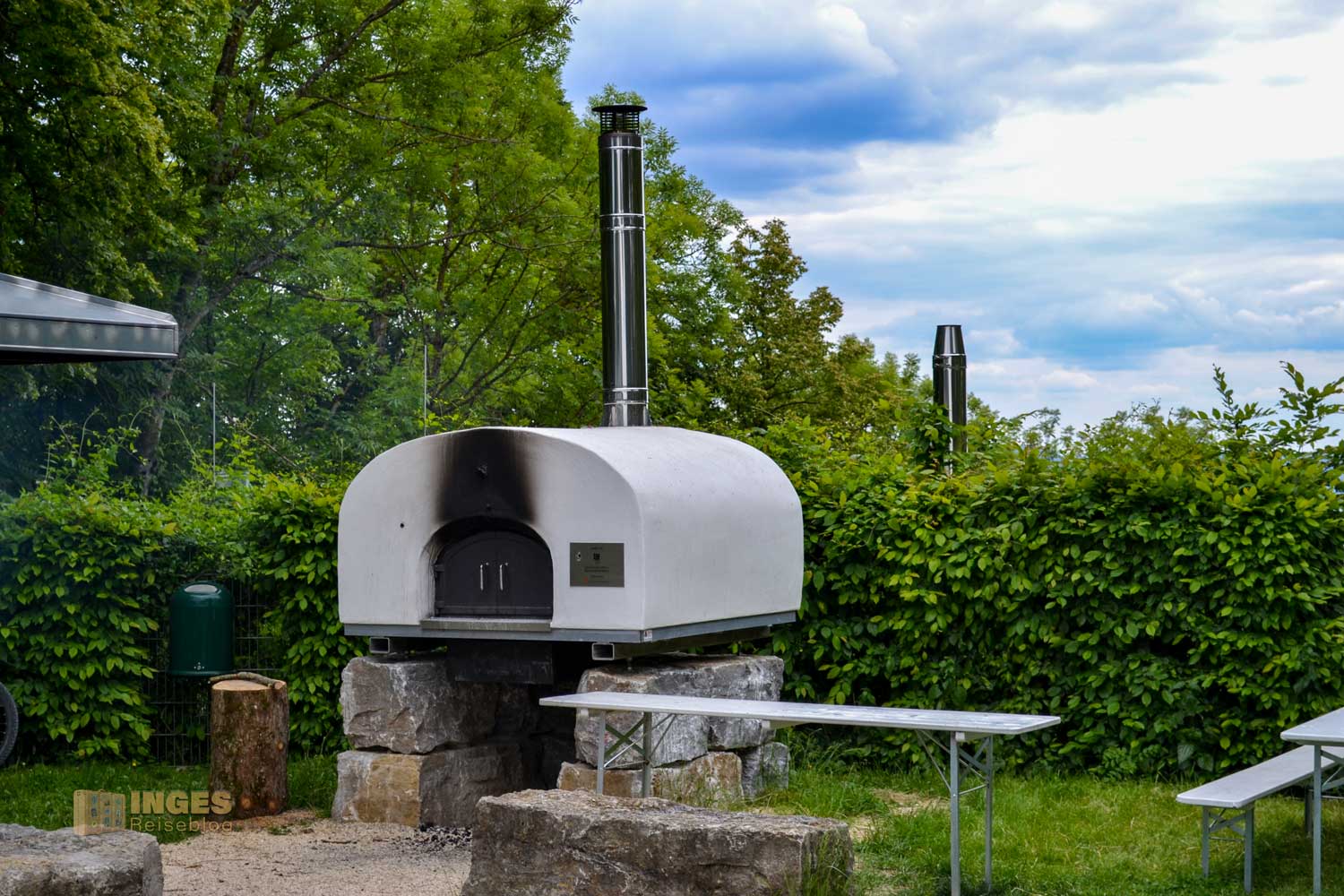 Ein kleines Ausflugsrestaurant und eine schön angelegte Grillstelle zum Selbergrillen stillt auf dem Berg die hungrigen Mäuler. Dass wir Schwaben nicht immer unserem Ruf als geizig gerecht werden, zeigte sich da oben auf dem Berg - kurz zuvor war im Ofen ein schwäbischer Hefezopf gebacken worden und wurde jetzt an die Wanderer und Mountainbiker verteilt. Ich sags euch .... DER Hefezopf kam an meinen Selbstgebackenen ziemlich nahe dran 🙂