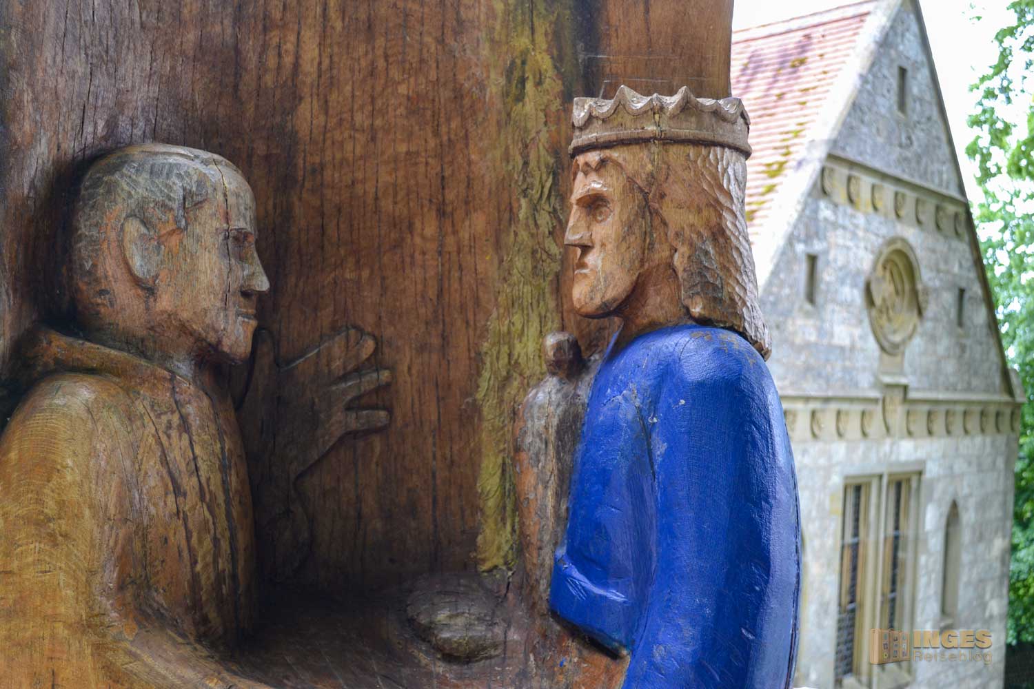 Manchmal läuft man etwas achtlos an Skulpturen vorbei - und wer bereits das Kloster Lorch besucht hat weiß, dass dort ein großes Staufer Panorma Rundbild zu bewundern ist. Aus diesem Bild wurde diese Szene für die Skulptur vor der Kirche herausgegriffen - Friedrich II. und Franz von Assisi. Die beiden waren Freunde und wurden am selben Taufstein in Assisi getauft.