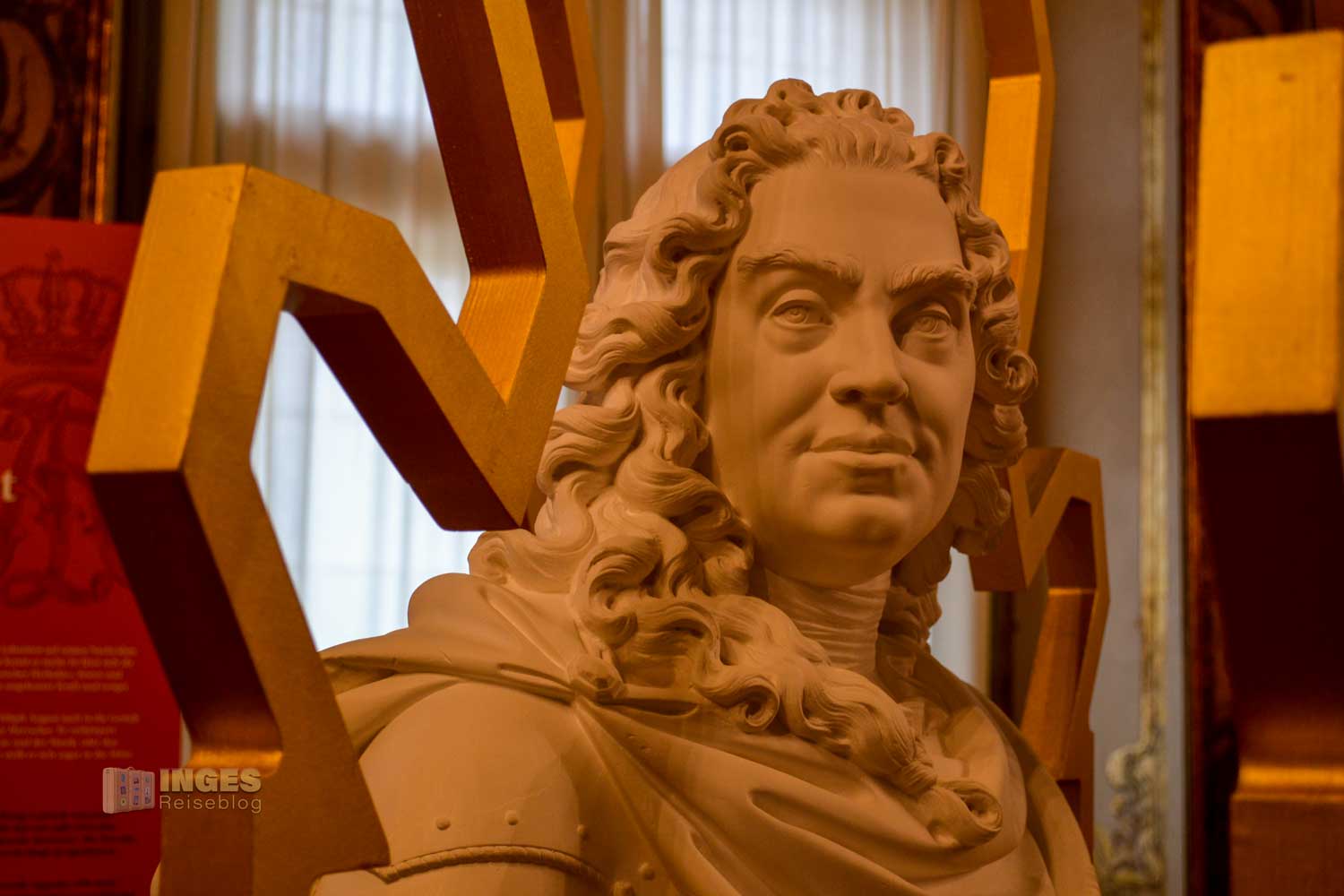 An mangelndem Selbstbewusstsein hat dieser Mann wahrlich nicht gelitten. Falsche Bescheidenheit war August dem Starken (1670-1733) ein Fremdwort und bei seinen Hoffesten stellte er sich sogar als Sonnengott in die Mitte. Dabei war für ihn, der als zweiter Sohn geboren wurde, gar nicht klar, dass er selbst einmal Kurfürst und sogar König von Polen werden würde. Überraschend kam er nach dem plötzlichen Tod seines Bruders mit 24 Jahren zu dieser Regierungsverantwortung. Pomp und Protz schuf er mit den Residenzen um Dresden, so Pillnitz und Großsedlitz.