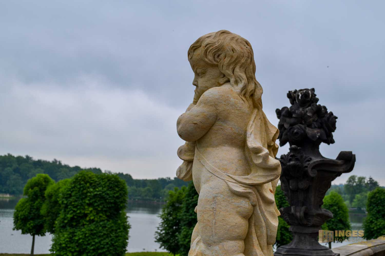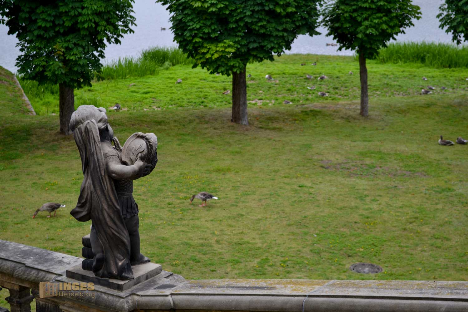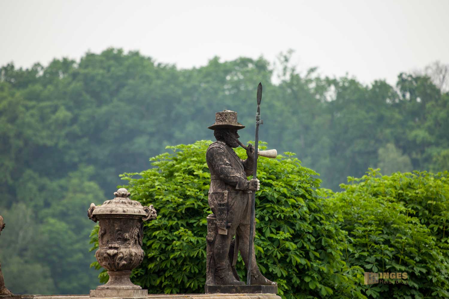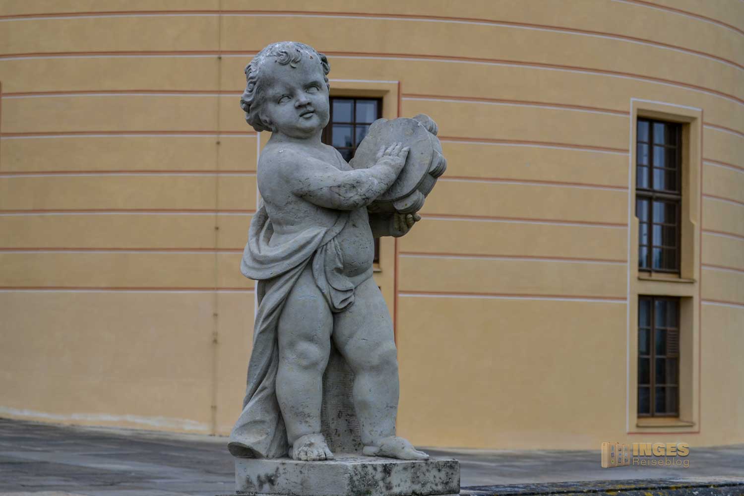 Überall auf den Balustraden der Terrasse stehen sie - die lieblichen Kinderfiguren, die ich am liebsten allesamt fotografiert hätte, die Jägerfiguren und die Vasen. Ich war fasziniert, wie ausdrucksvoll die Gesichtchen sind ... seht selber. Nicht verwunderlich, dass mir hier mein Mann immer ein Stück voraus war 🙂