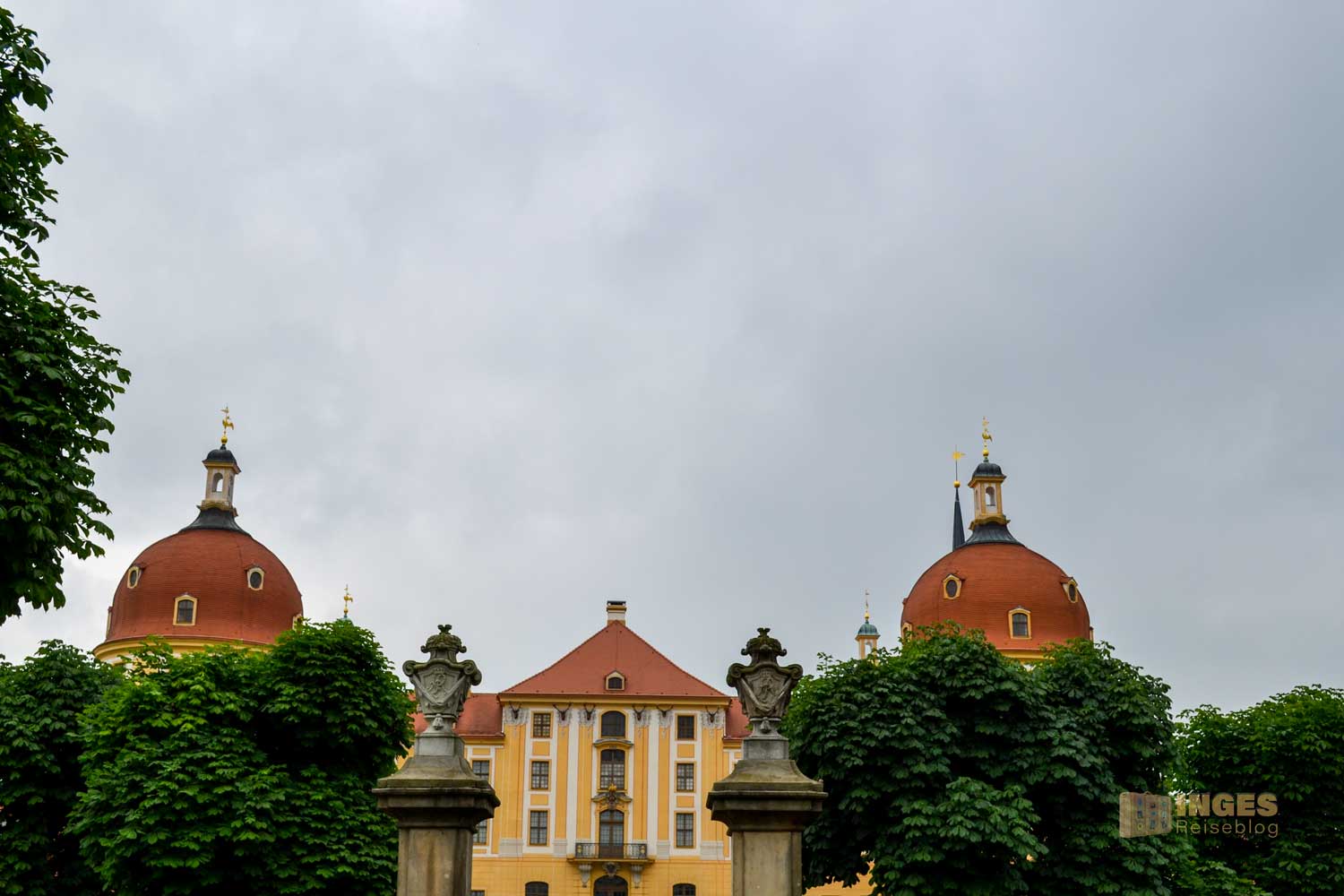 Schon im Vorfeld auf unsere Reise nach Dresden stand fest - das barocke Schloss Moritzburg muss unbedingt mit auf den Besichtigungsplan. Und weil auf diesem Plan sooo viel drauf stand, haben wir uns an diesem Tag ganz früh auf den Weg gemacht, um bei Öffnung des Schlosses mit dabei zu sein. Die Vermieterin unserer Ferienwohnung hat anhand unseres Programms lächelnd gemeint "Na, da haben sie sich ja einiges vorgenommen." Aber sind wir im Urlaub? Nein, Dresden war für uns ganz klar als Sightseeing und nicht als Erholungsurlaub gedacht. Der war dann im Anschluss im Spreewald geplant. Fridolin brachte uns tapfer aus dem Rand der Innenstadt durch das Straßengewirr raus in das nördlich von Dresden gelegene Barockschloss.