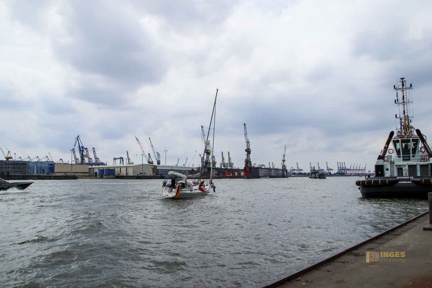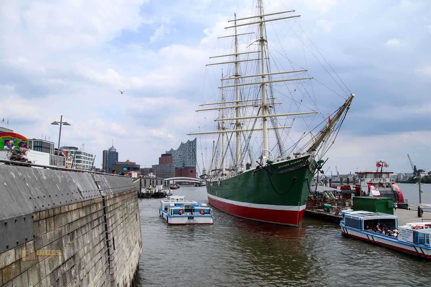 Und das bei 700 Meter Länge auf den Pontons, die man über bewegliche Brücken erreicht. Es war vielleicht ein Gewusel dort, denn von den Landungsbrücken legen die Elbfähren, die bis hinaus nach Finkenwerder fahren, hab und natürlich auch die unzählich vielen Schiffe die Hafenrundfahrten anbieten.
