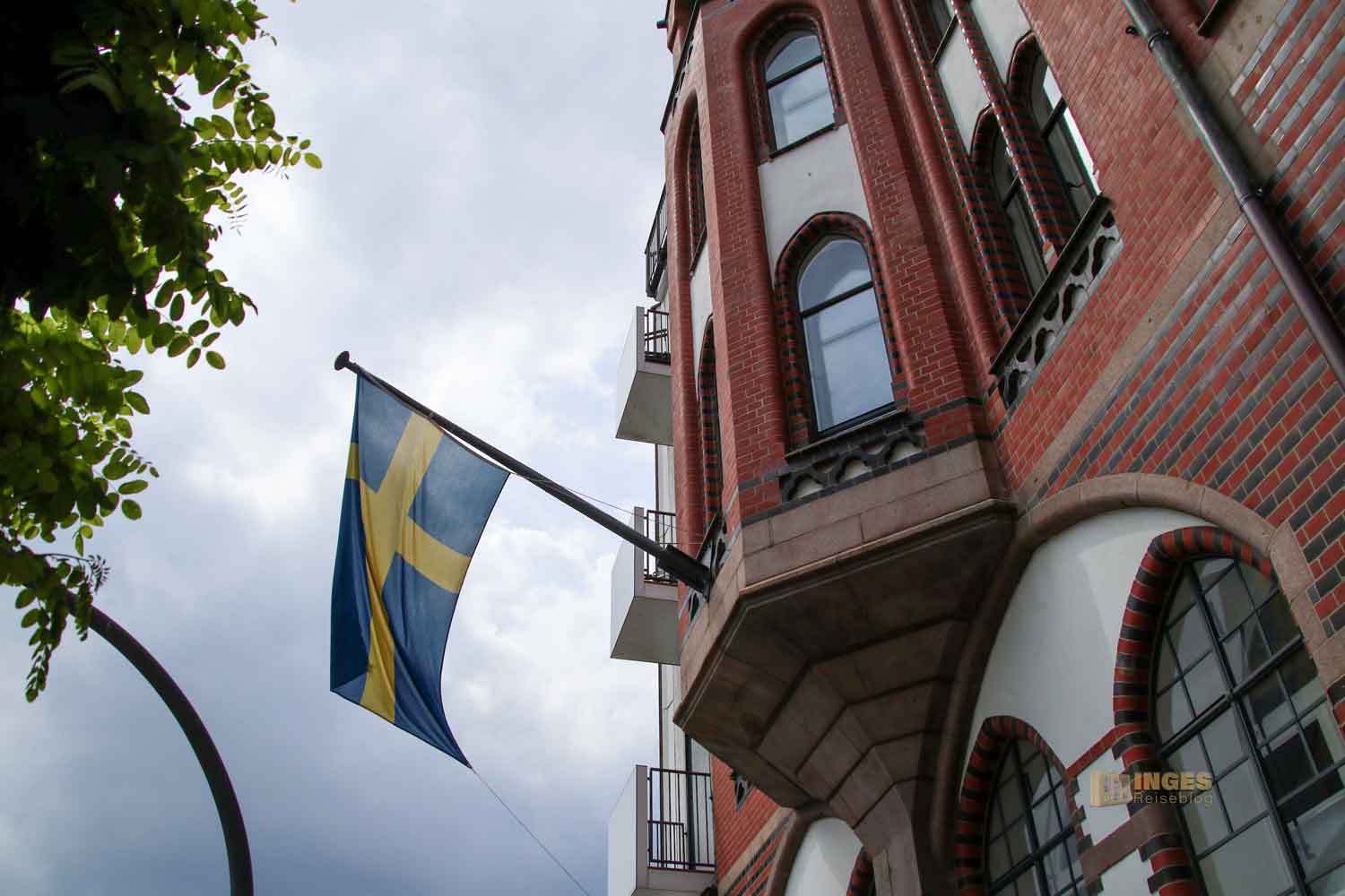 Die Flagge am Gebäude zeigt schon von weitem, dass ihr hier richtig seid. Und weht auch gleichzeitig für das Schwedische Konsulat, welches im gleichen Gebäude untergebracht ist.
