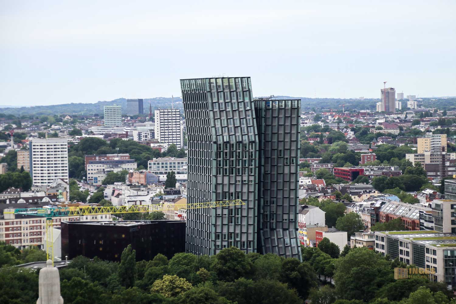 Zwei Hochhäuser, die ihr am Besten in voller Kulisse vom Michel herunter sehen könnt, stehen am östlichen Eingang zur Reeperbahn. War früher, so um 1889, hier ein beliebtes Tanzlokal, verwaiste Anfang 2000 dieser Bereich. Man wollte etwas ganz Neues auf diesem Grundstück, rief einen Architekturwettbewerb aus, aus dem 2003 der Sieger hervorging. Der Architekt präsentierte zwei Türme in Form eines tanzenden Paares, das sich dem Tangotanz hingibt. Was würde besser zur Reeperbahn passen, als die Vereinigung von Musik und Sex (der Tango versprüht ja Erotik pur) in Form eines Hochhauses. Naja, diese Idee kam wohl bei den Bewohnern des Stadtteils nicht so wirklich gut an. Ein reiner Bürokomplex, ein Luxushotel? - und das auf dem Kiez, der so ein ganz anderes Erscheinungsbild hat? Alles Murren und Motzen half nichts, in drei Jahren Bauzeit entstanden ab September 2009 die zwei Glas- und Stahltürme, die sich 75 und 85 Meter in die Höhe strecken. Mehrere hundert Menschen haben heute hier ihren Arbeitsplatz.