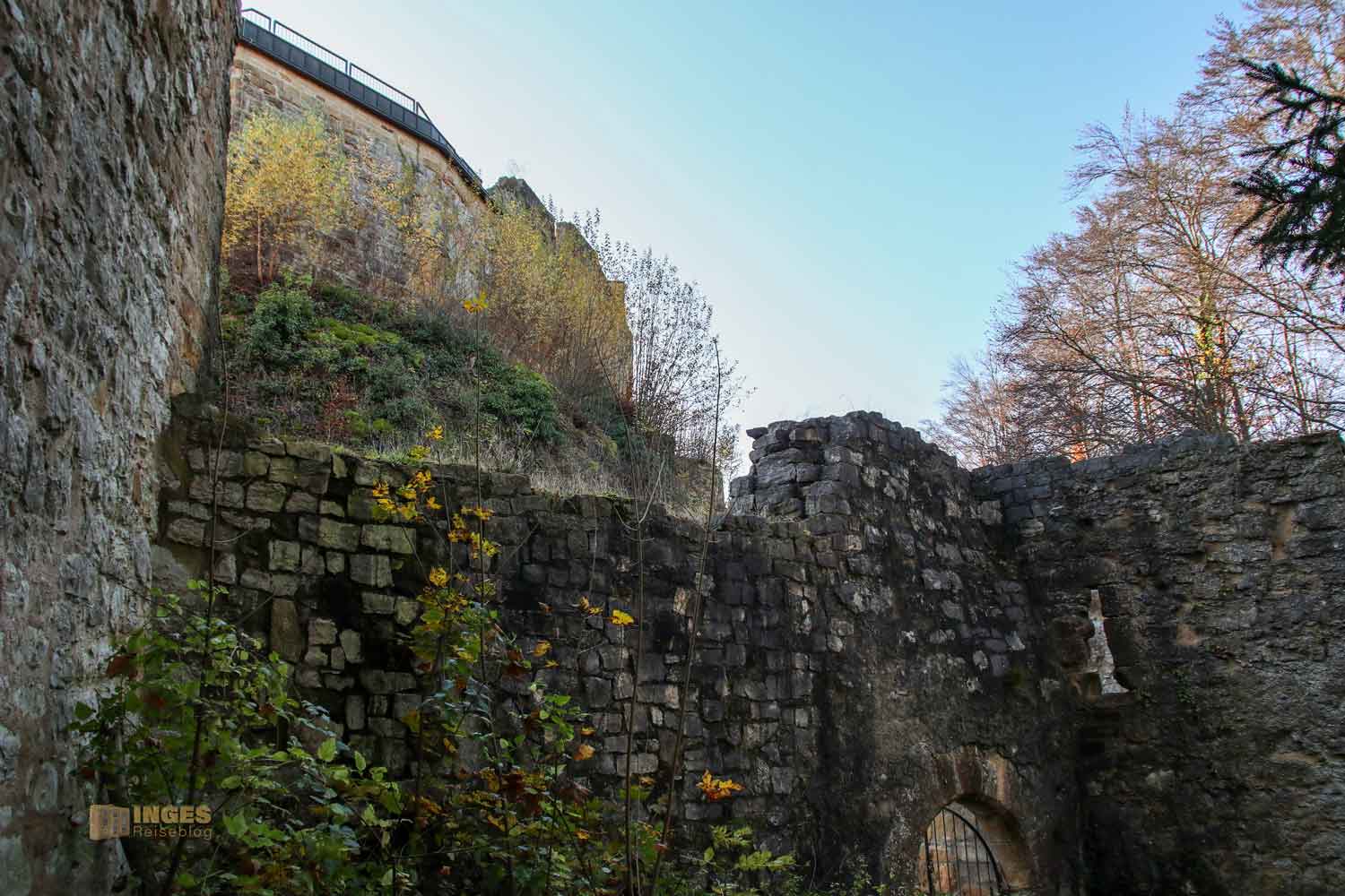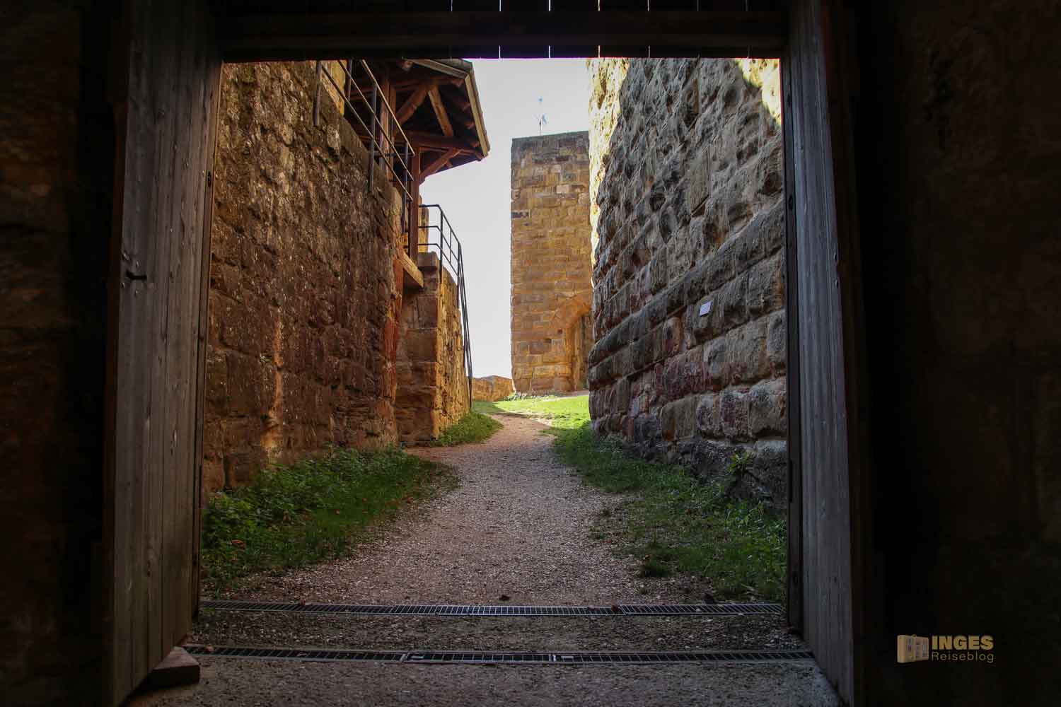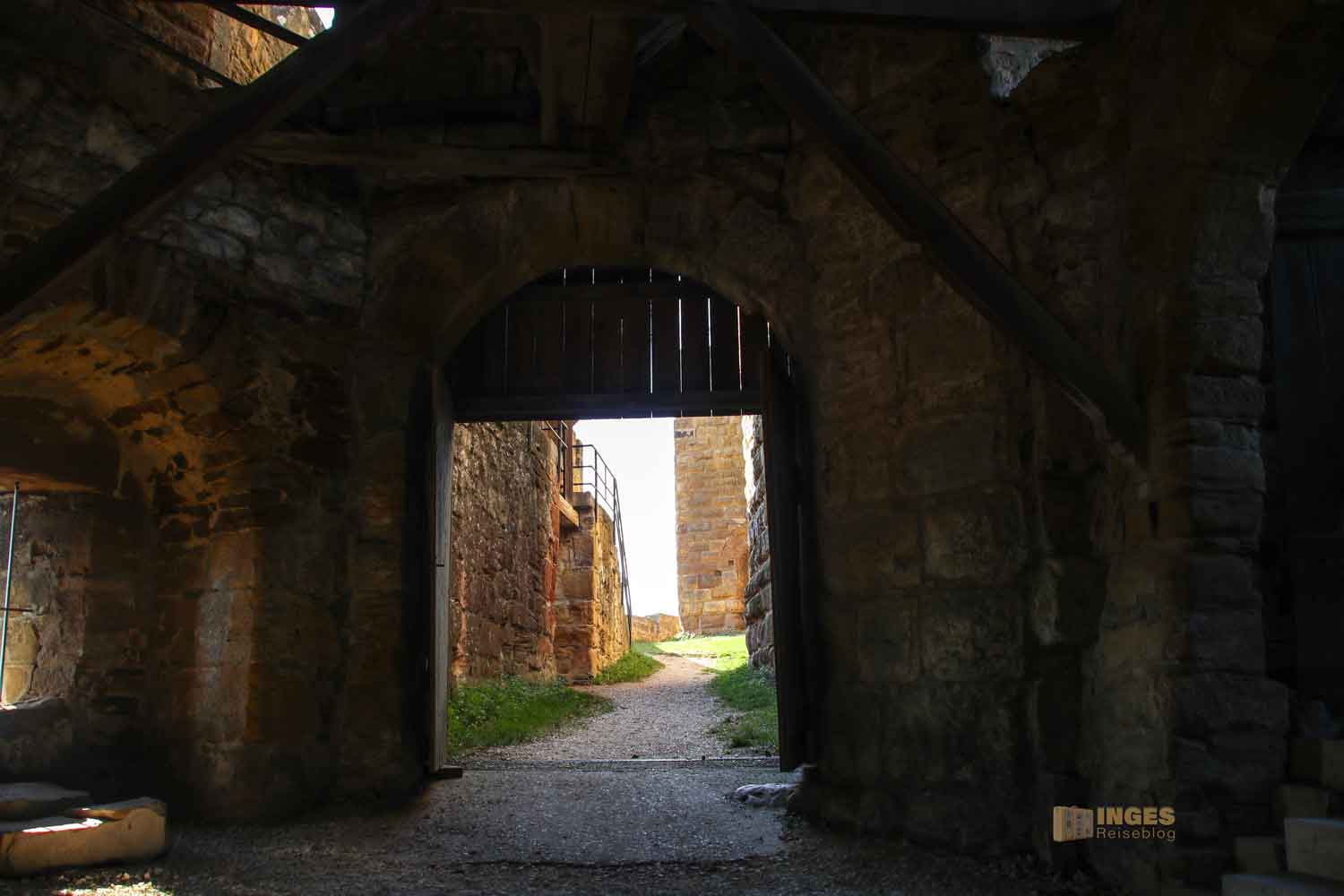 Da ließen wir uns nicht zweimal bitten. Das war mal ein ganz neuer Weg für uns, so in die Burgruine zu kommen. Musste gleich im Bild festgehalten werden 🙂