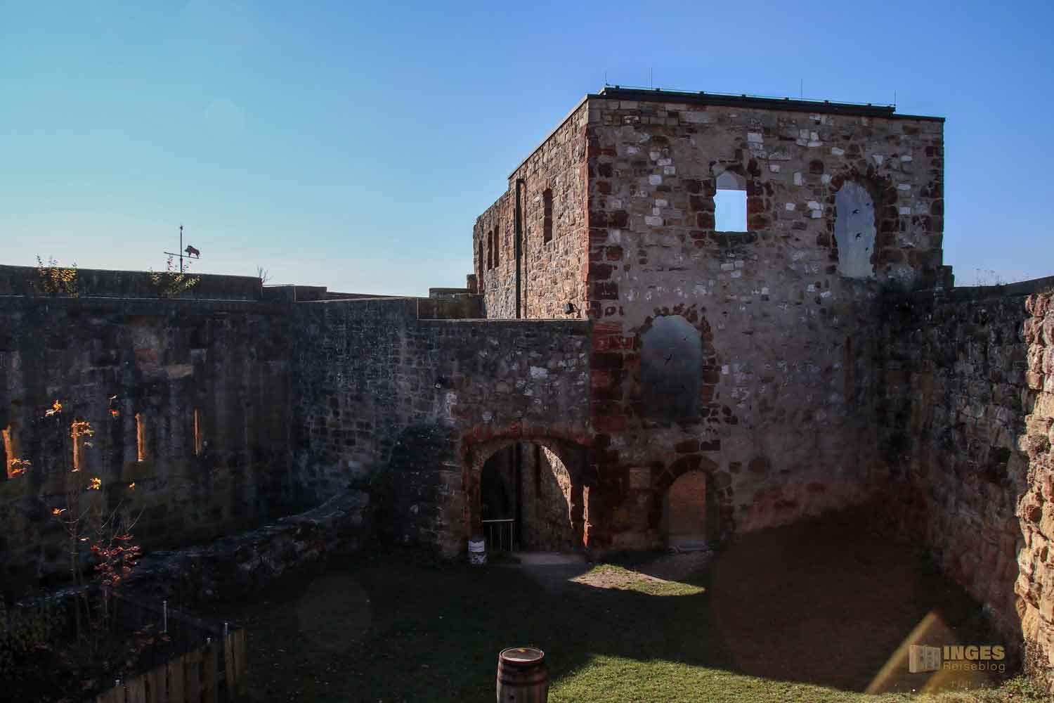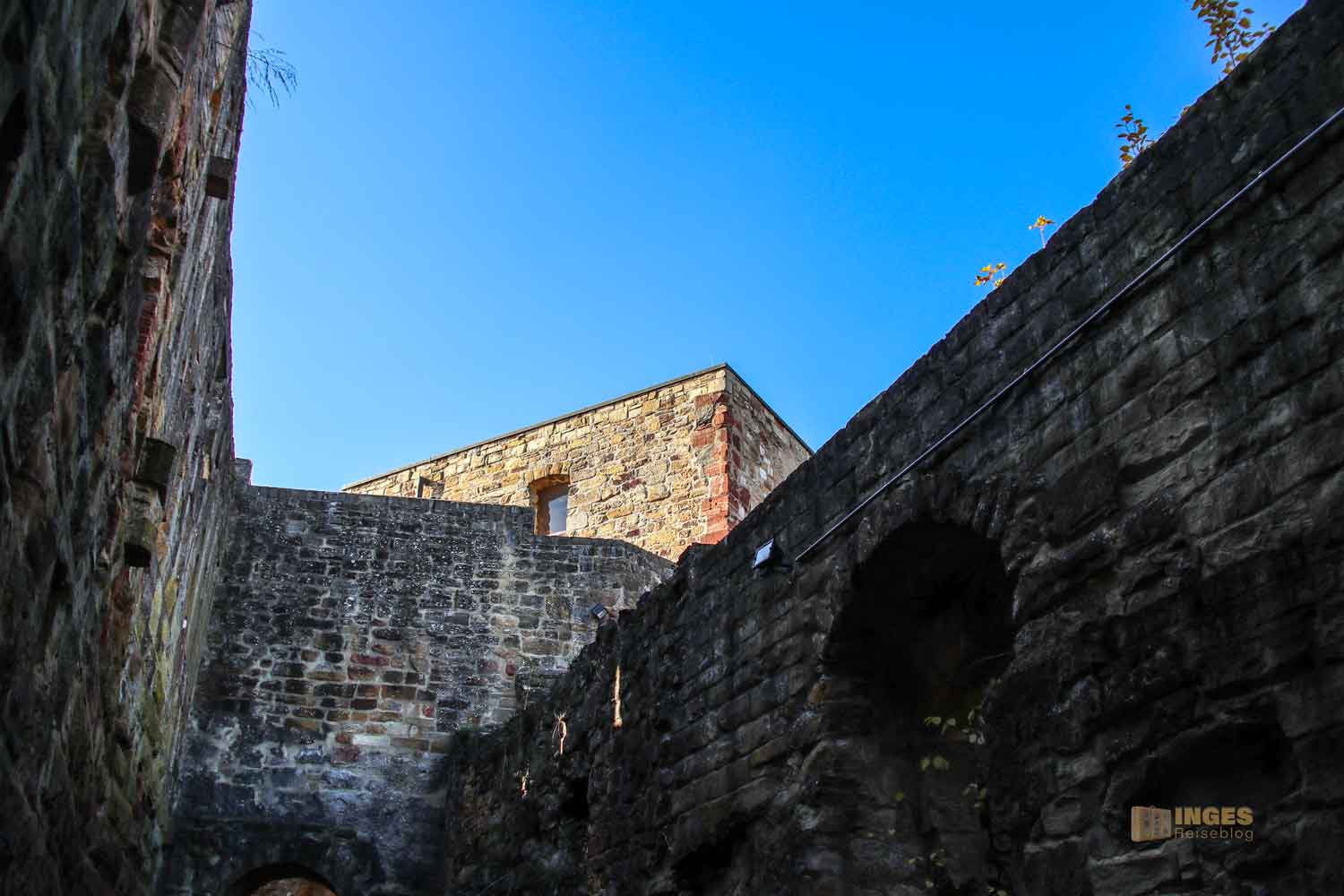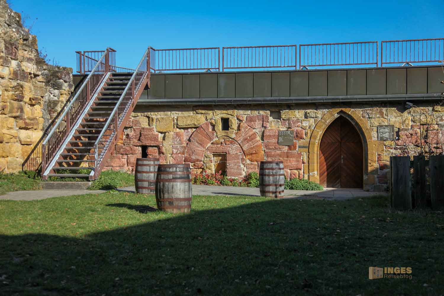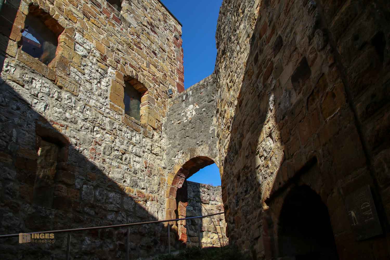 Da ließen wir uns nicht zweimal bitten. Das war mal ein ganz neuer Weg für uns, so in die Burgruine zu kommen. Musste gleich im Bild festgehalten werden 🙂