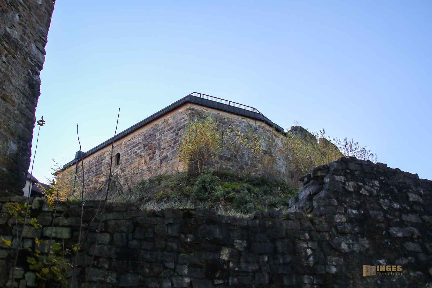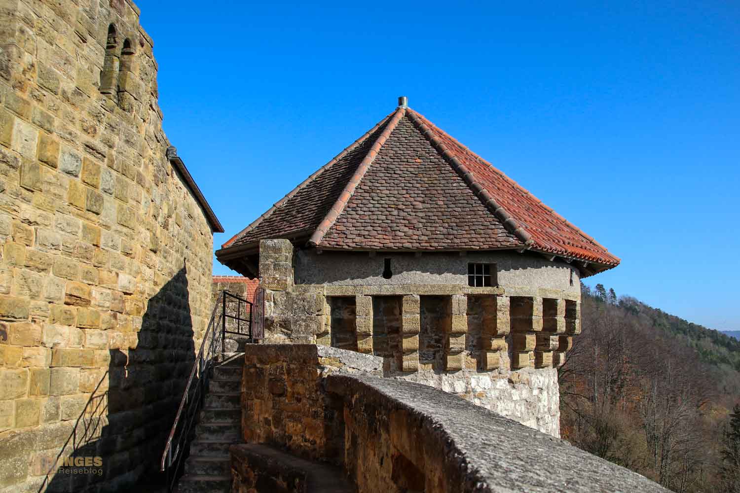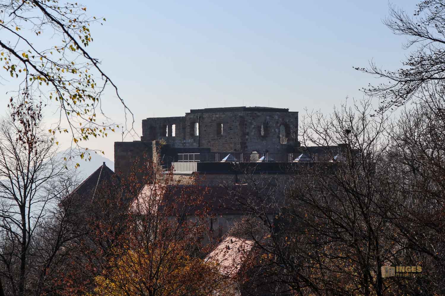 Und spätestens hier auf diesem Dach weiß man, warum man sehr gerne den Berg zur Ruine hochläuft. Die