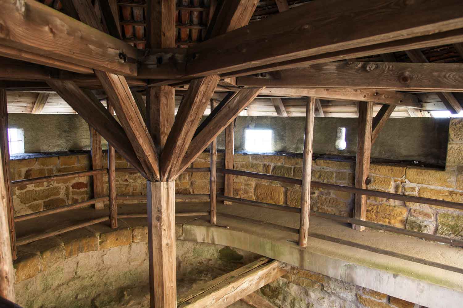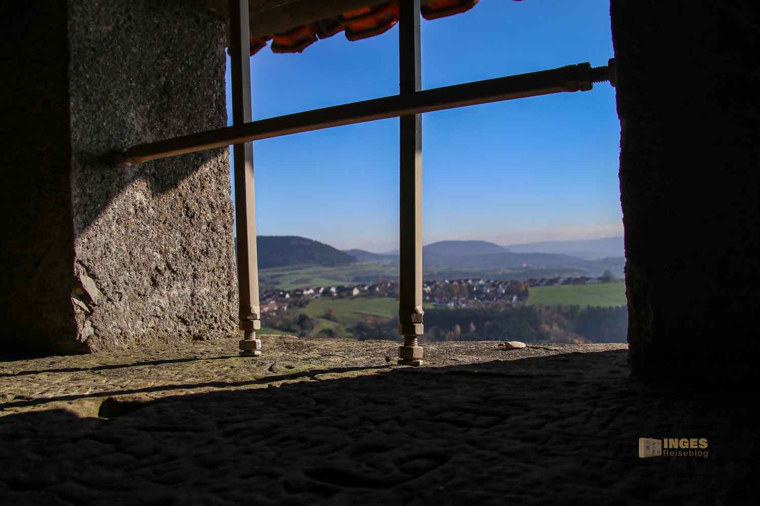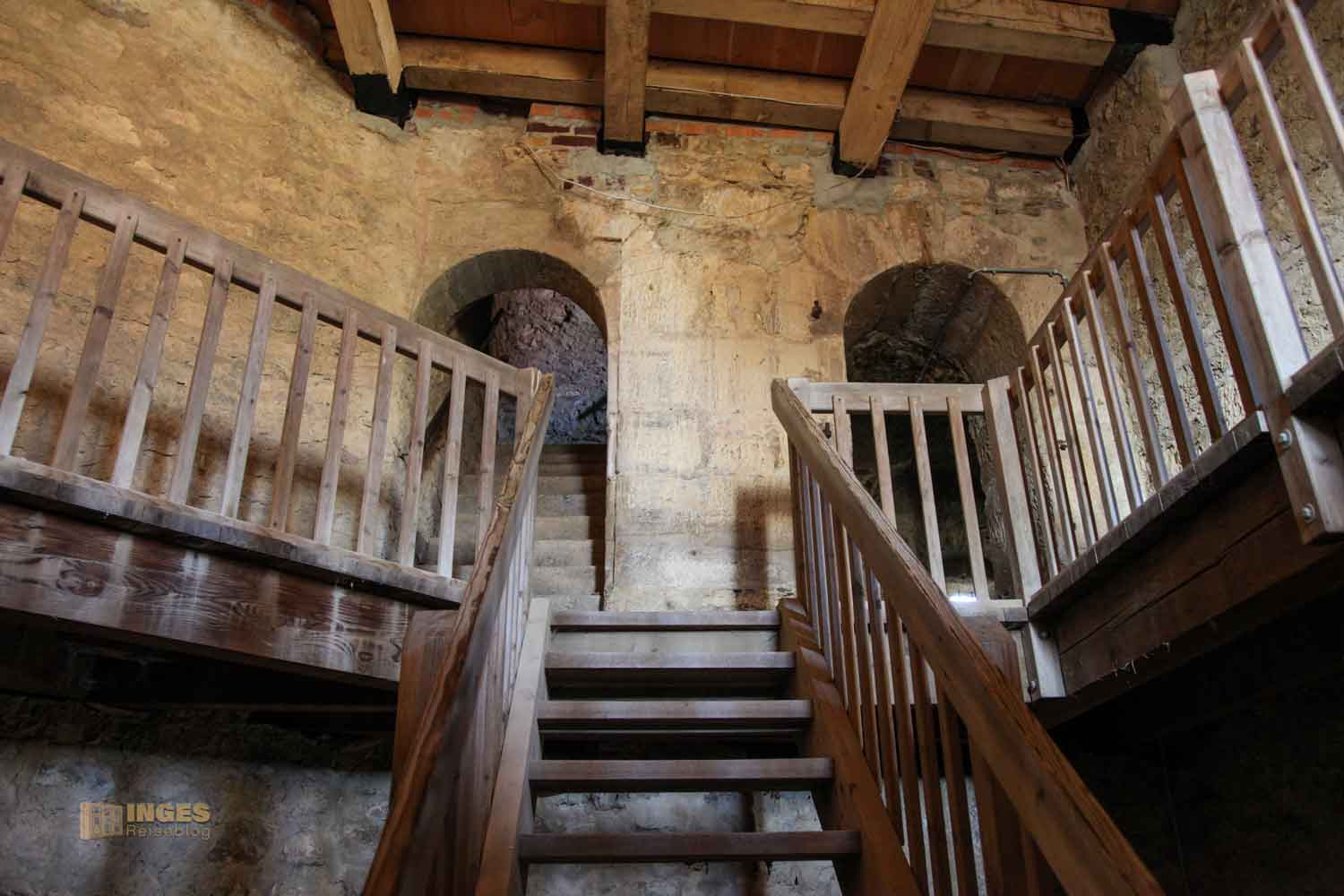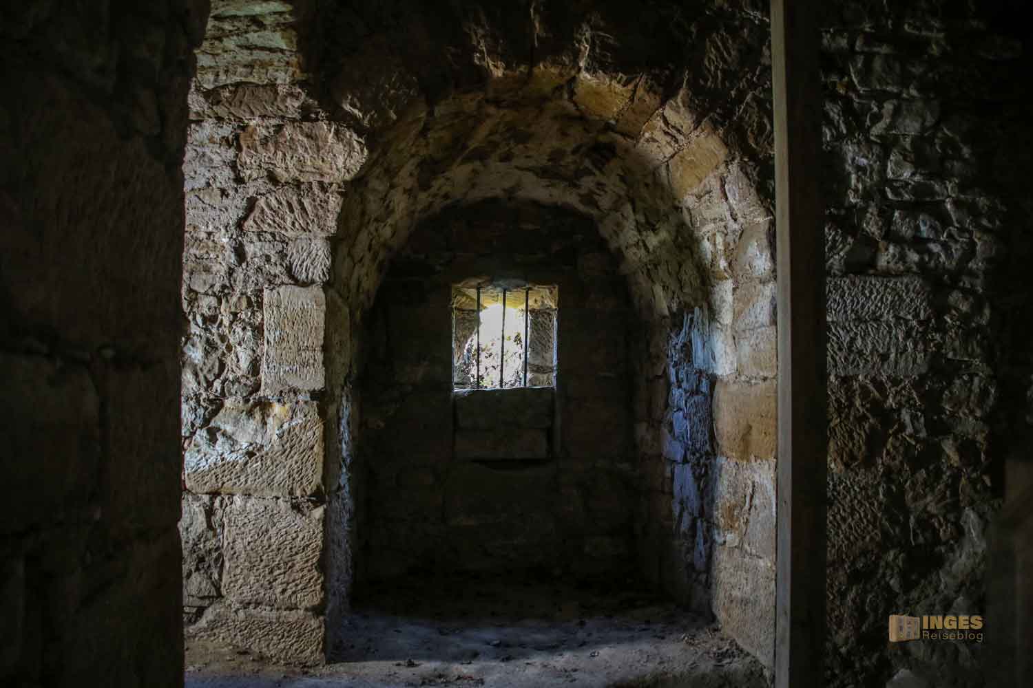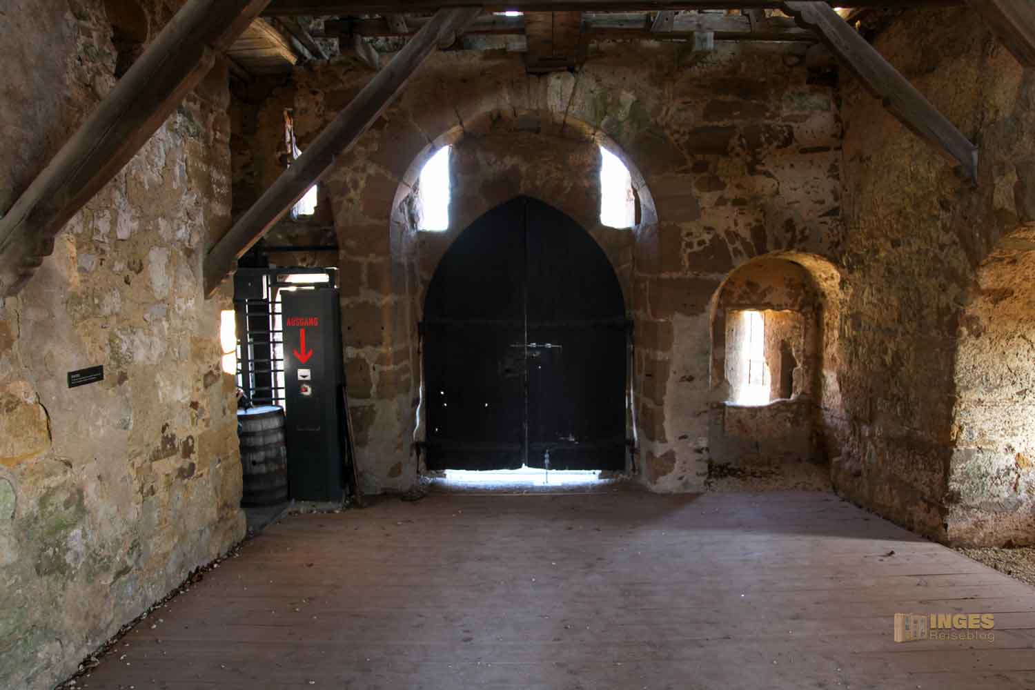 in der zu früherer Zeit Gefängniszellen waren. Keine Sorge, heute ist alles offen und ohne Schloss und Riegel. Aber damals, so 1473 hat der damalige Burgherr das Recht bekommen, einen Galgen aufzustellen.