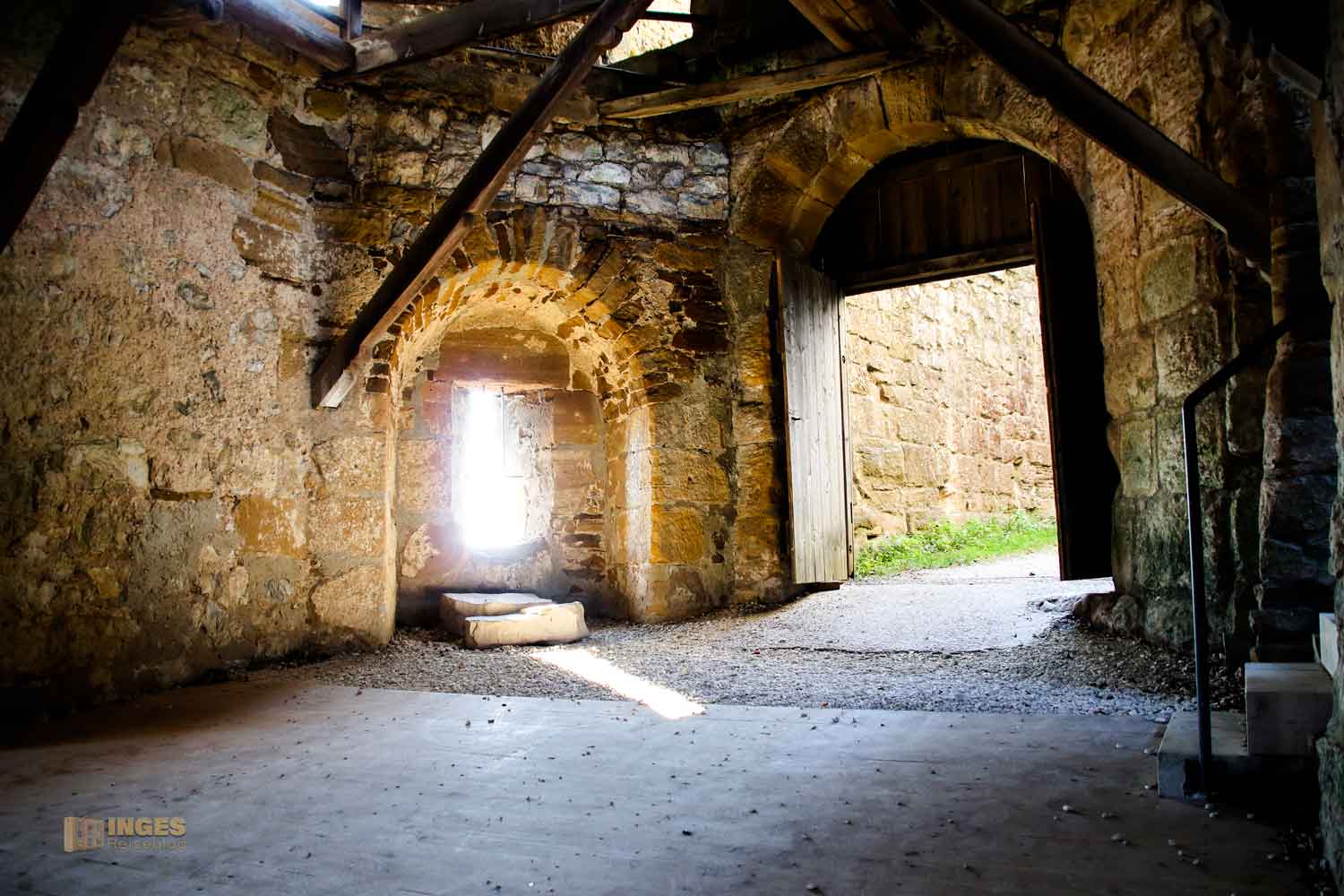 ins Torhaus der Burgruine Hohenrechberg