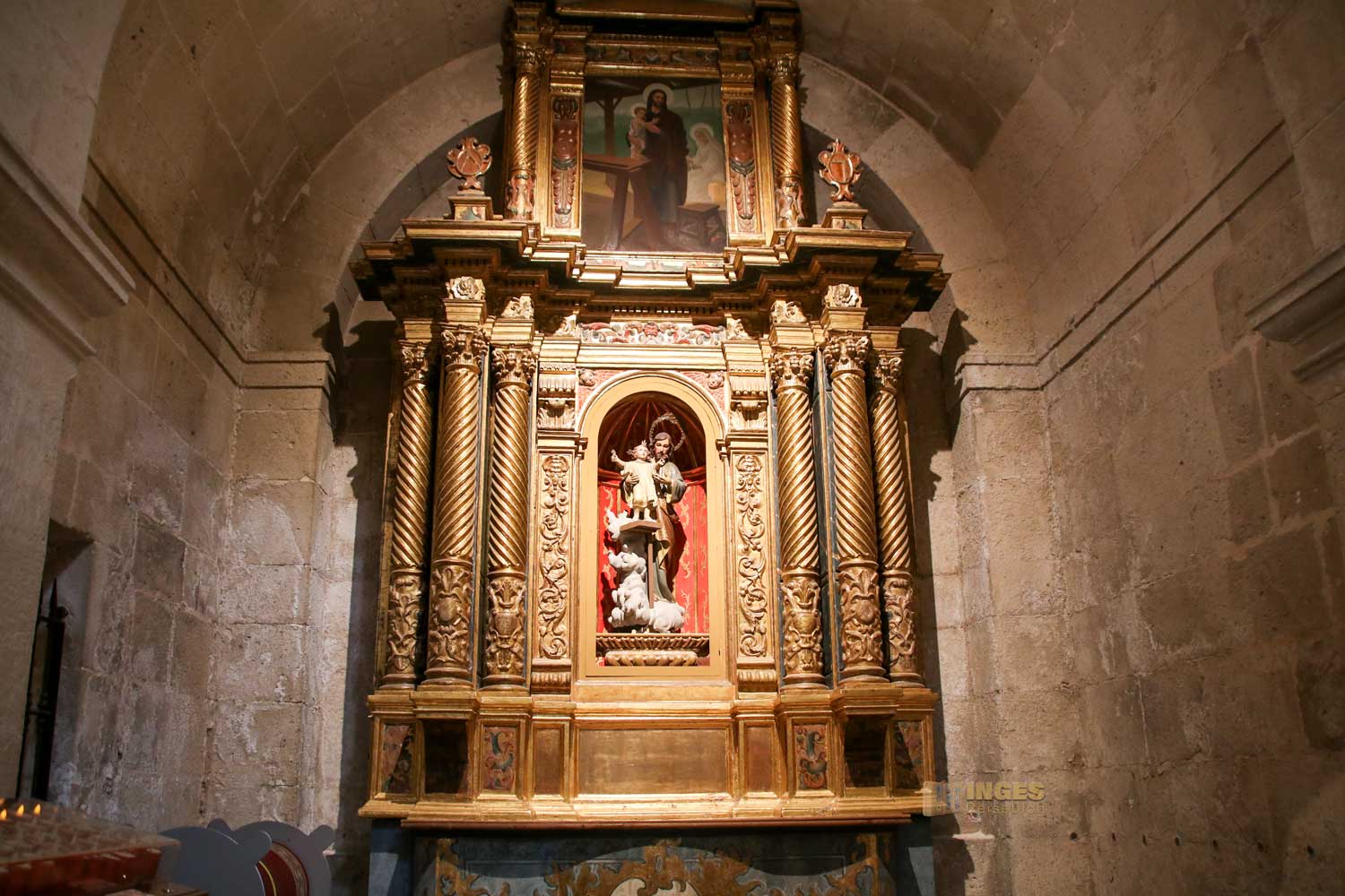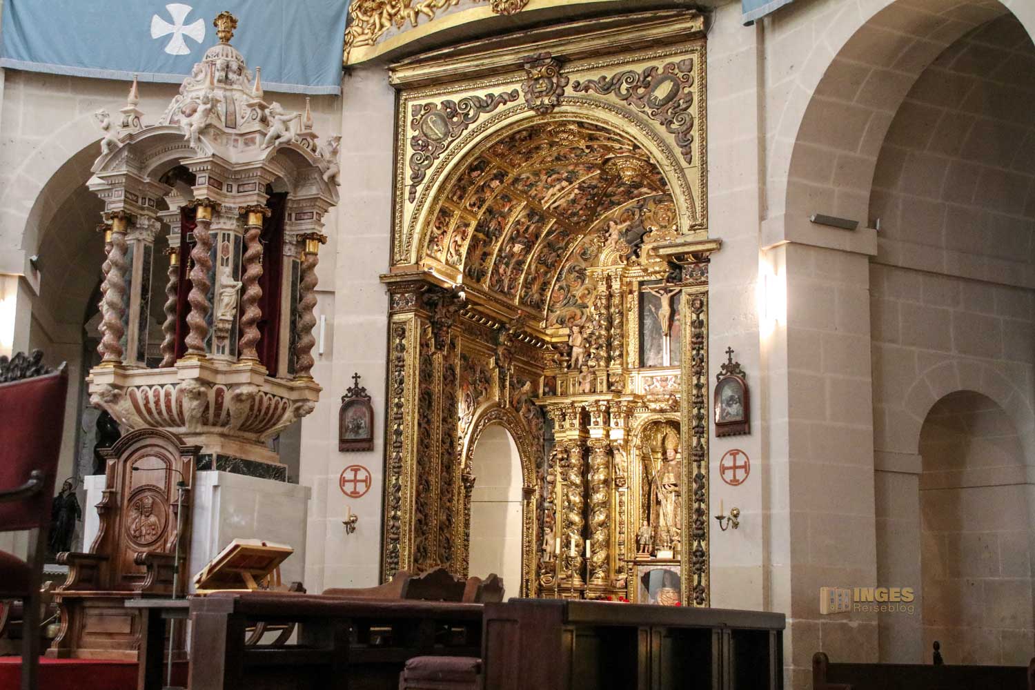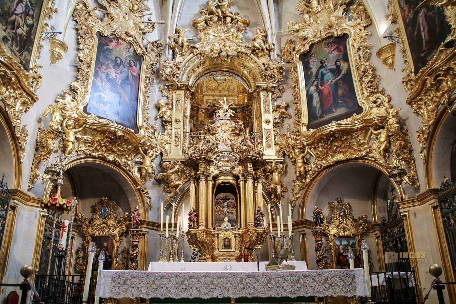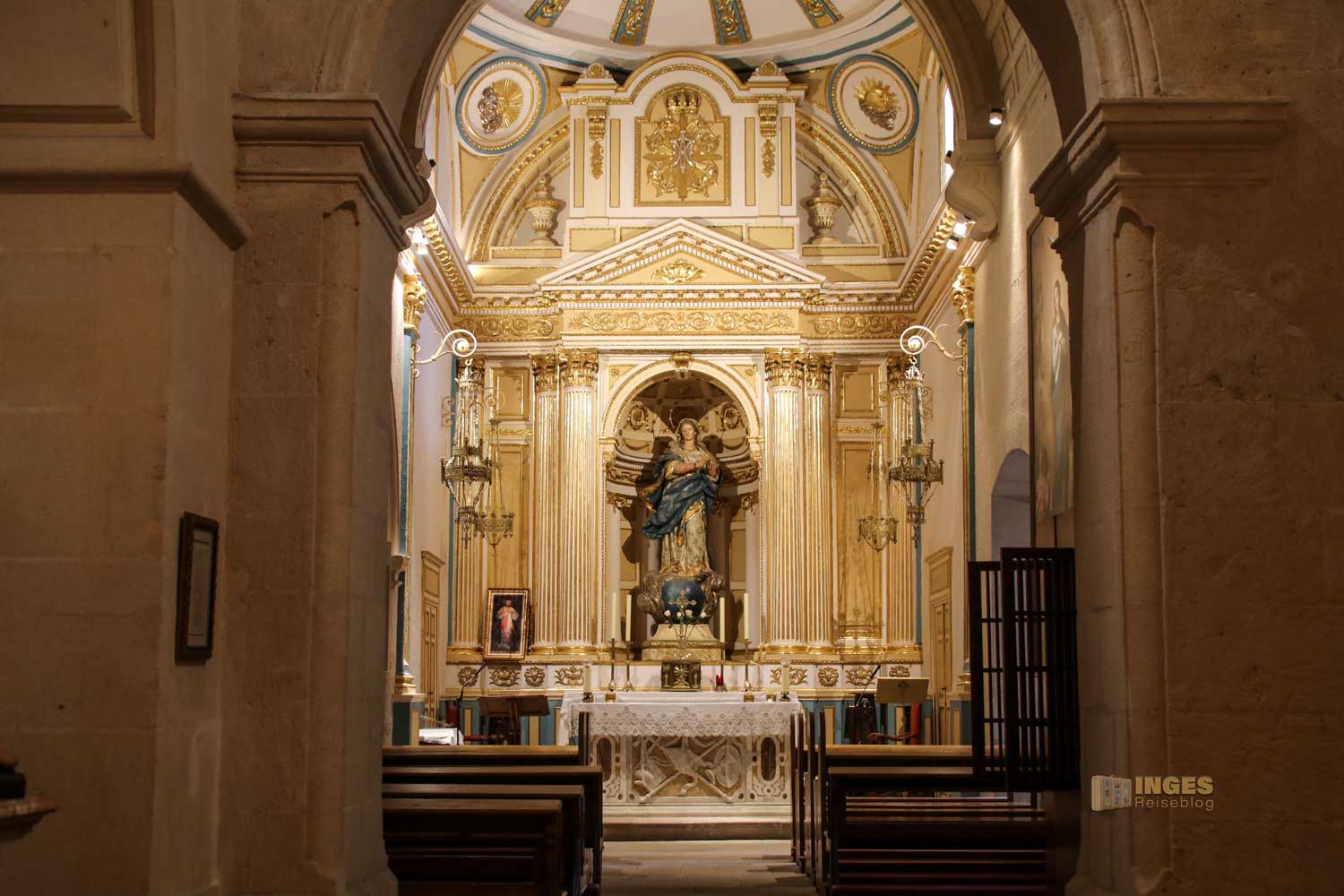 Wenn ihr mehr über diesen bekannten Heiligen lesen möchtet, dann klickt HIER. Der glanzvollste Altar in der Kirche, ist ihm geweiht. Wie in der Region üblich, hat auch diese Kirche eine blaue Kuppel, 45 Meter hoch, und lässt sich von der Burg gut ausmachen.