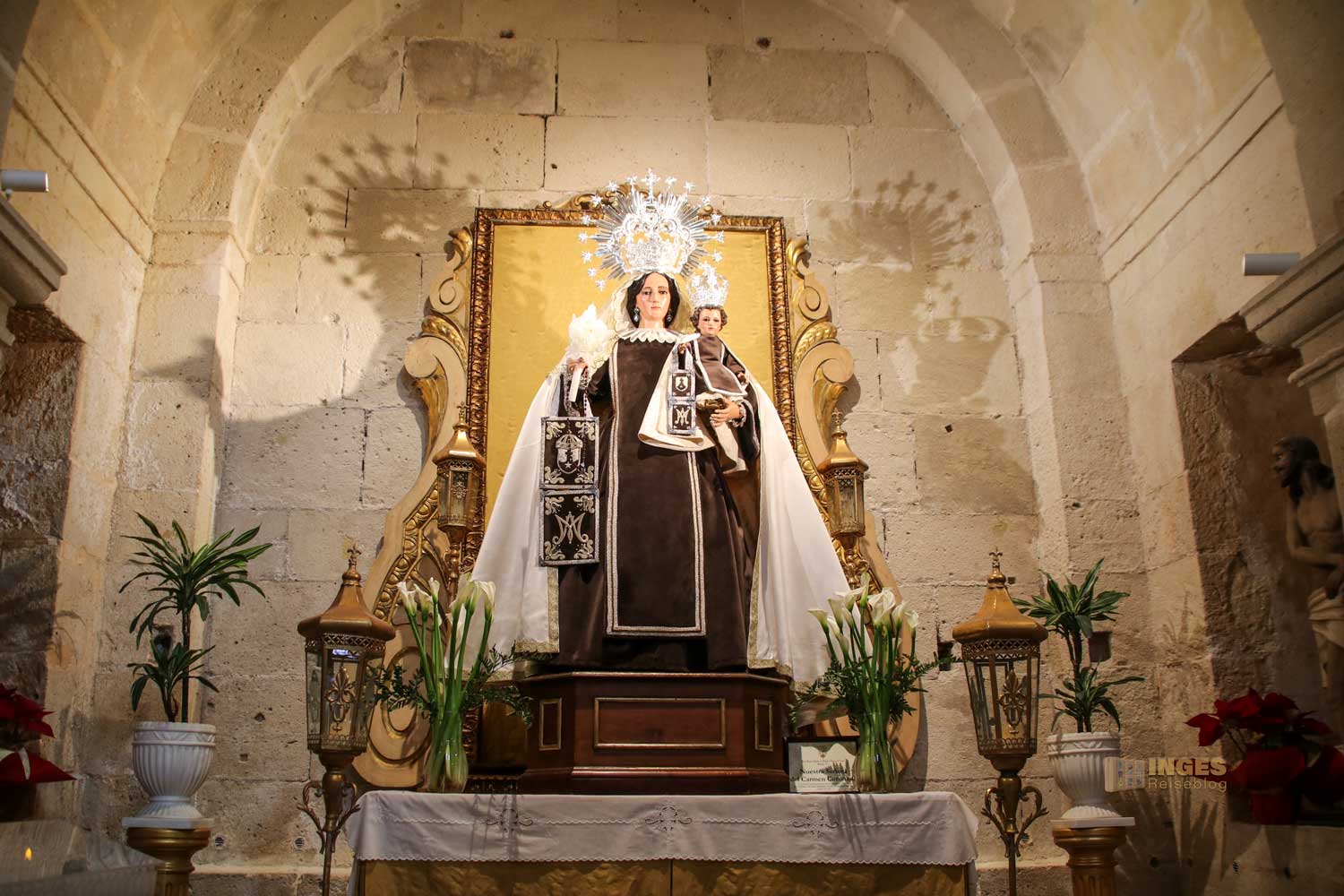 Zwischen 1613 und 1662 wurde sie erbaut, und zwar über einer alten Moschee. Denn eigentlich gehen die Ursprünge der Kirchen zurück auf den 6. Dezember 1244. Als die Muslime dem damaligen Fürsten Alfons X. dem Weisen die Stadt übergeben hatten, ordnete er den Bau einer Kirche an. Und da an diesem Tag der Todestag des Hl. Nikolaus von Bari gefeiert wird, ordnete er an, dass die Kirche dem des Hl. Nikolaus gewidmet wird, der fortan als Schutzpatron von Alicante zählt.