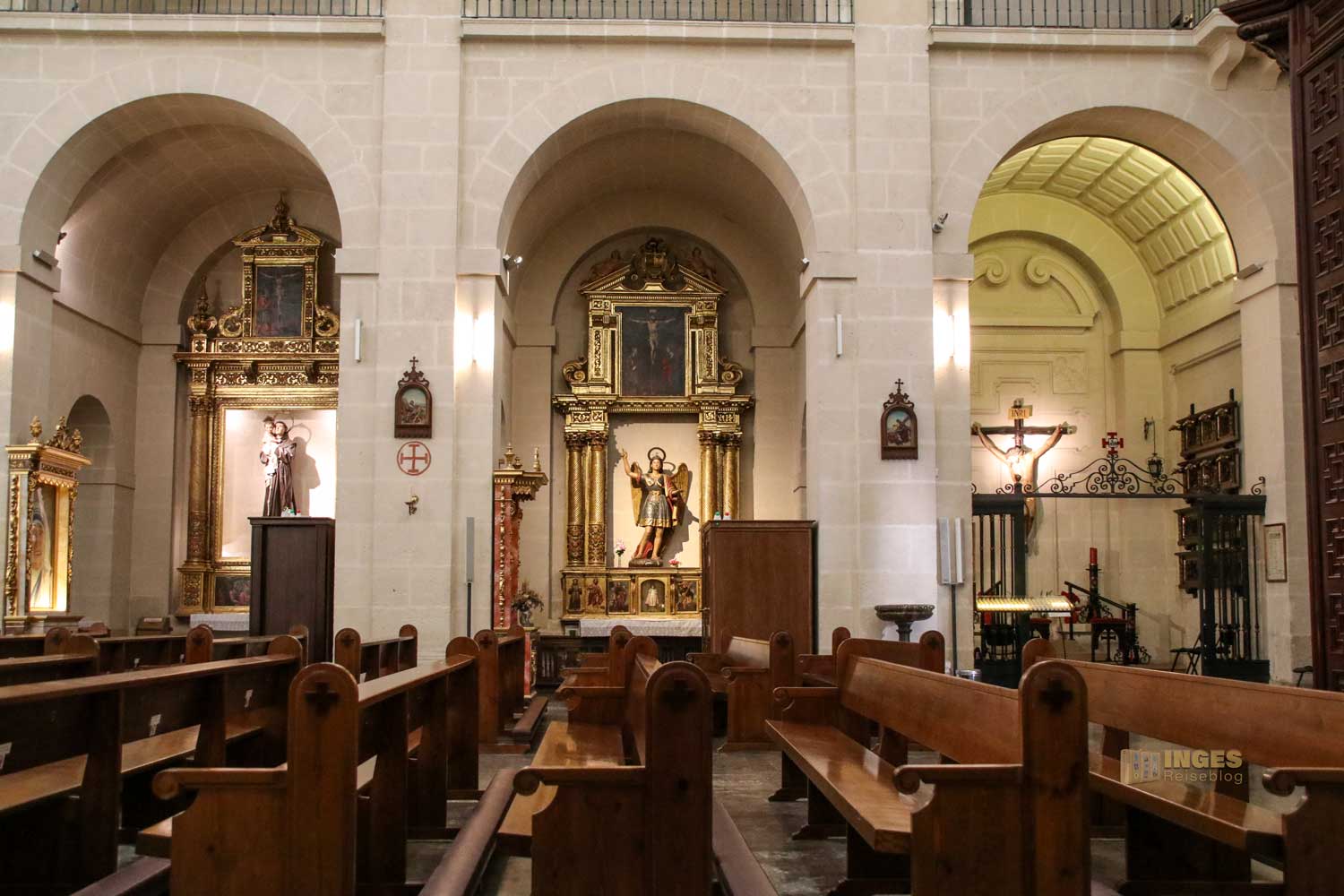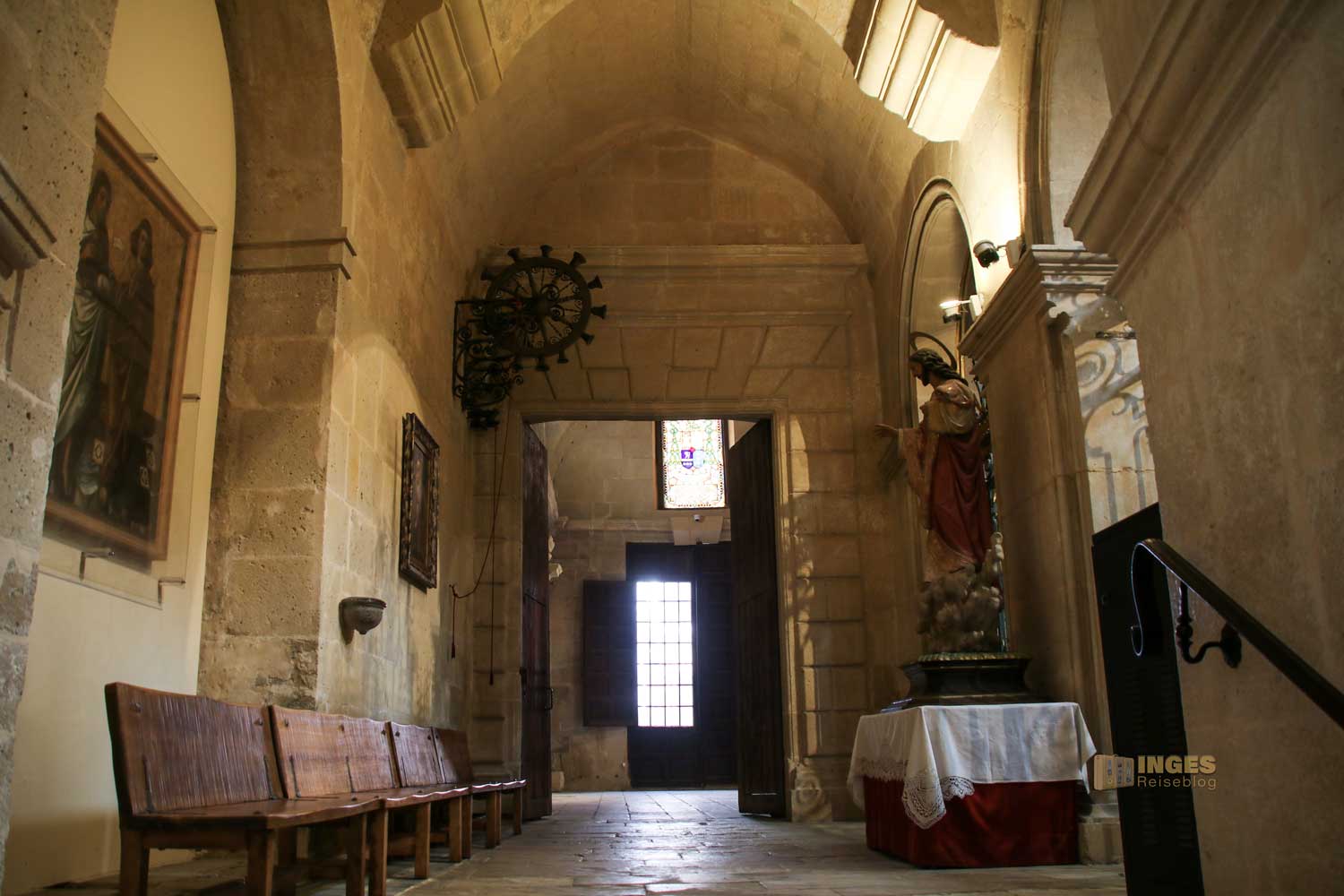 Nennt mich verpeilt oder schlecht informiert - und ich gebe euch allen recht damit. Denn anstatt wir zu Fuß hinunter in die Altstadt wären, und damit das Viertel Santa Cruz, den farbenfrohen Teil der Altstadt entdeckt hätten, sind wir auf gleichem Weg mit dem Aufzug wieder hinunter in die Stadt. Aber, wer weiß, vielleicht kommen wir ja mal wieder nach Alicante. Glück hatten wir mit geöffneten Kirchentüren.