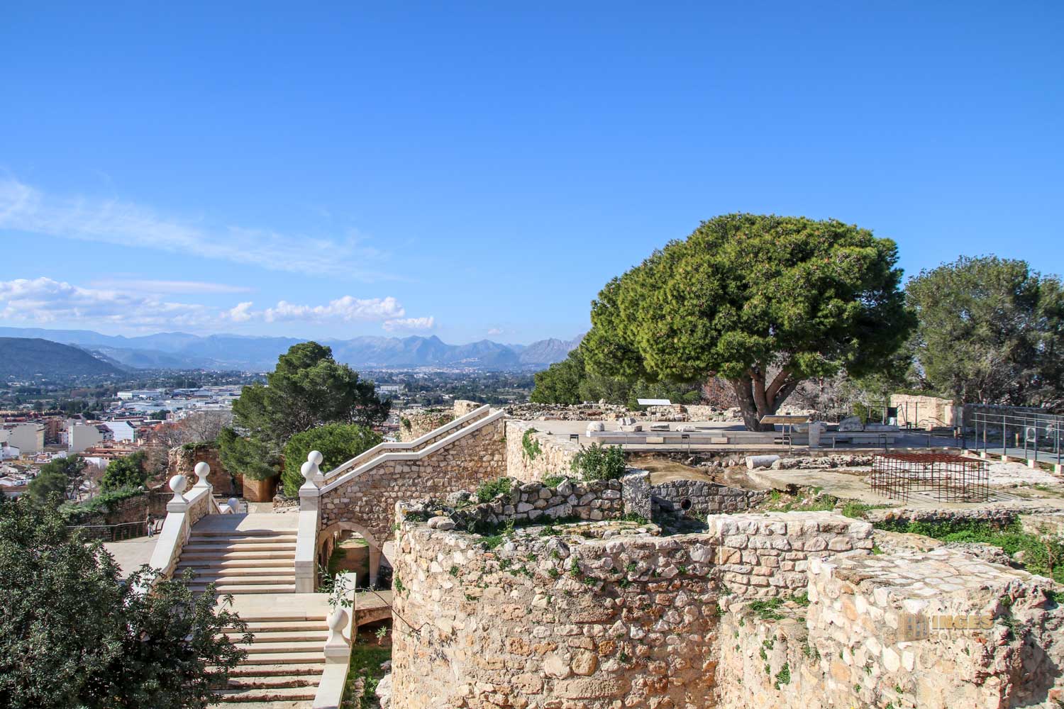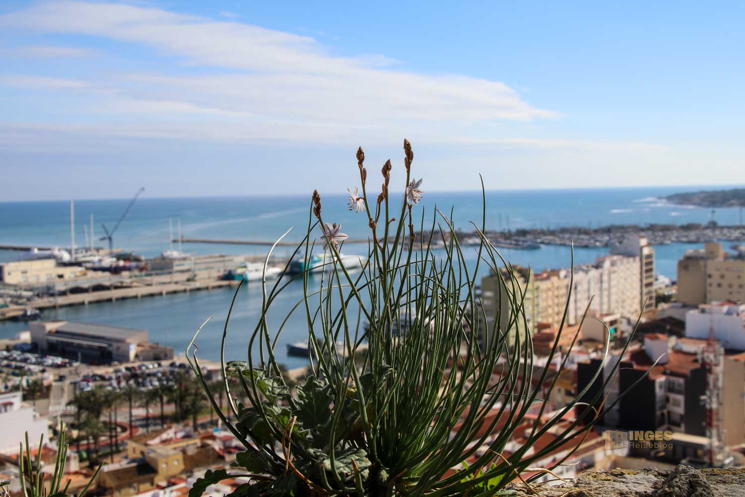 hat, erklärt sich von selber. Nach allen Richtungen hat man Blicke über die Stadt, ins Hinterland mit den zum Greifen nahen Berge, dem Hafen, wo die Fähre nach Ibiza wartet und den langen Sandstrand für den Dénia ebenfalls bekannt ist.