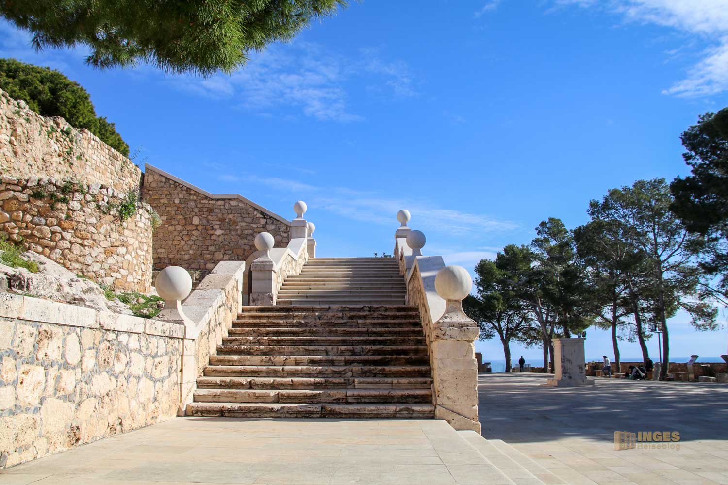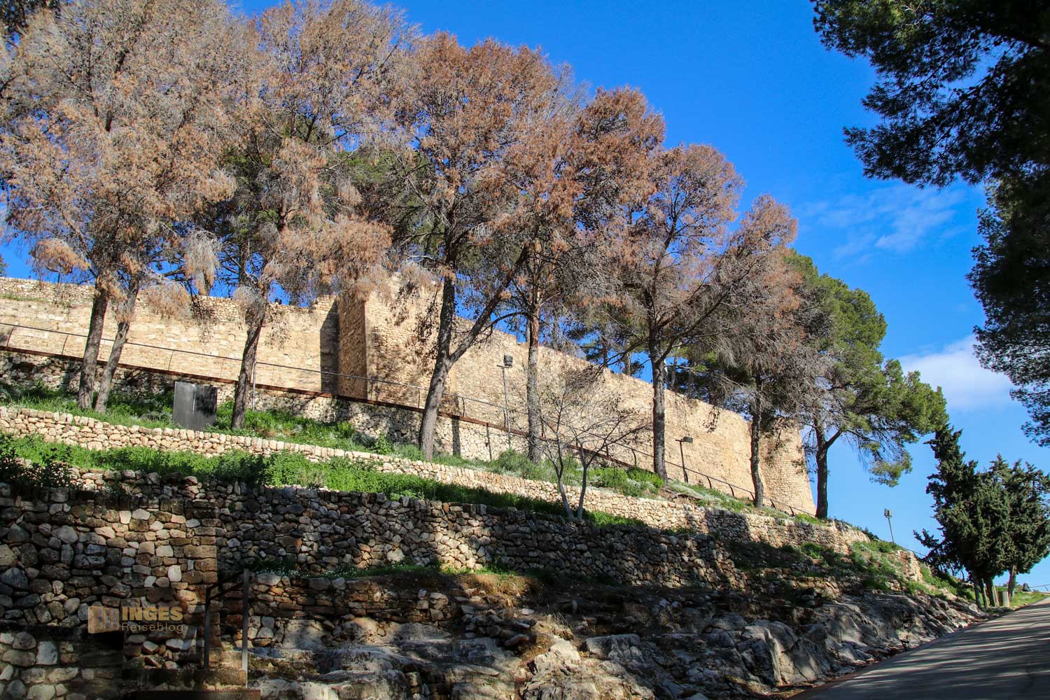 Ja, wenn diese Steine dort oben auf dem Berg erzählen könnten, dann könnten sie von Verteidigung und Streit ums Erbe berichten. 13 Jahre wurde im Spanischen Erbfolgekrieg um die Nachfolge von Karl II. gestritten. Teilweise wurde die Burg dabei zerstört. Die Garnision, die zur Verteidigung lange Jahre dort untergebracht war, wurde 1859 aufgelöst. Danach wurde der Berg zum Palast des Gouverneurs. Heute ist hier ein Museum untergebracht.