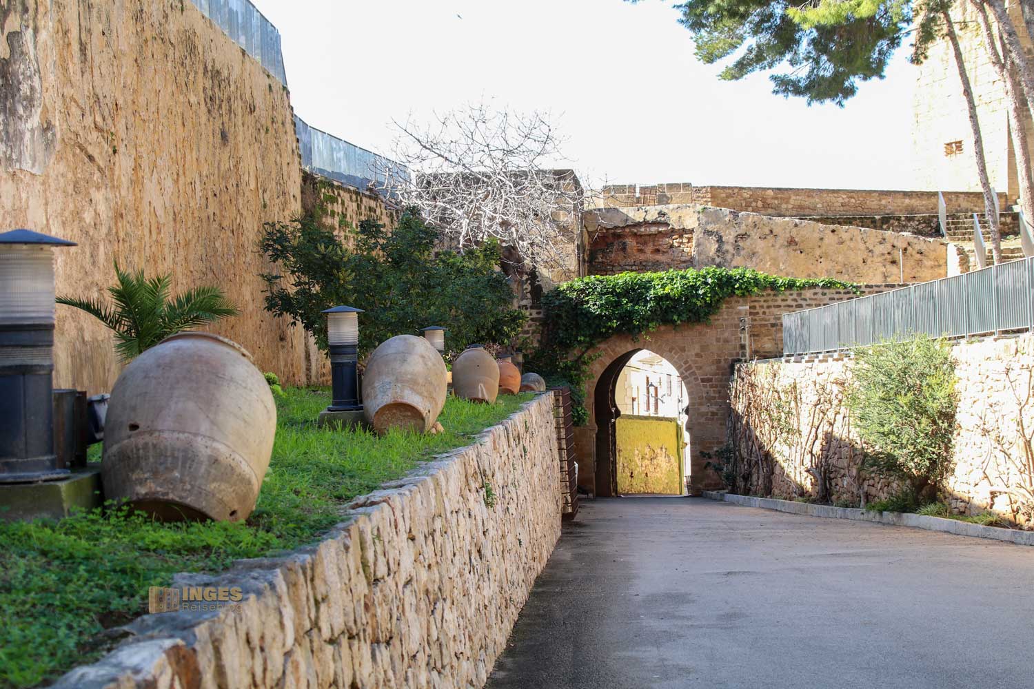 Unscheinbar klein scheint das Zugangstor - aber ich sag euch, pure Täuschung und Tarnung. Denn der Durchgang war bewusst mit so einem kleinen Durchgang gehalten. Der Turm darüber diente einst der Überwachung der Küste, damit man schnell in der Verteidigung gegen die Piraten reagieren konnte. Aber dahinter öffnet sich eine weite Burganlage. Während wir gemütlich den Weg hochschlendern, bekommt ihr