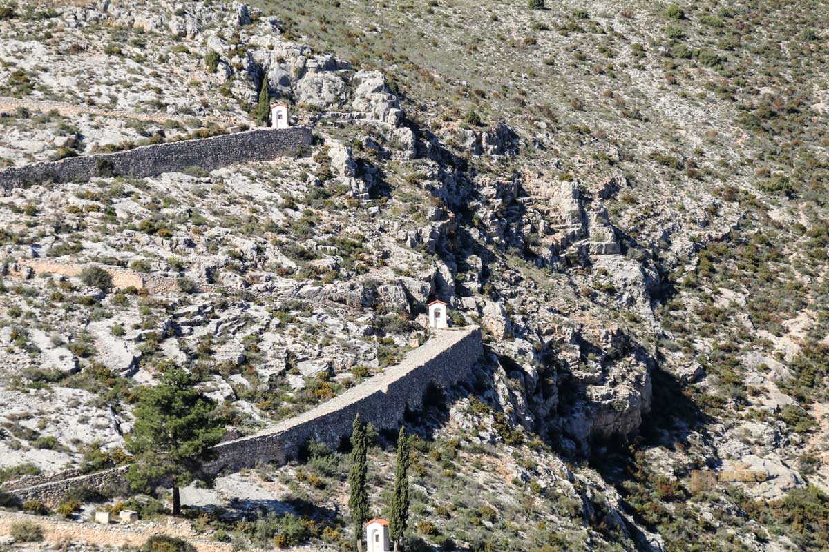 Man glaubt es ja kaum, aber dieser kleine Ort hat im Ortskern drei Kapellen und um Bocairent nochmal sechs weitere. Weithin sichtbar ist diese Einsiedelei auf 730 Meter Höhe. Im 16. Jahrhundert wurde sie erbaut, und um sie rankt sich ebenfalls eine schöne Legende: