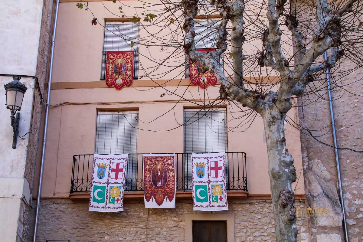 Und der beginnt mit dem wichtigsten Zentrum, dem Plaça de l'Ajuntament de Bocairent. Sitz der Gemeindeverwaltung, Treffpunkt der Einwohner und der einzige Ort hier oben, an dem man zwei Lokale findet. Zeit für eine schnelle Kaffeepause, in einer Bar, die allein für sich schon ein Besuch wert ist. Man bestellt am Tresen, in einer urigen Kellerbar, die sich aber bei näherem Schauen als sehr groß erweist. Der Platz mit seinen hohen Häusern ist festlich geschmückt, denn ein paar Tage später beginnt das große Fest zu Ehren des Schutzheiligen San Blas. Sechs Tage wird hier eines der ältesten und eigentümlichsten Mauren- und Christenfeste gefeiert.