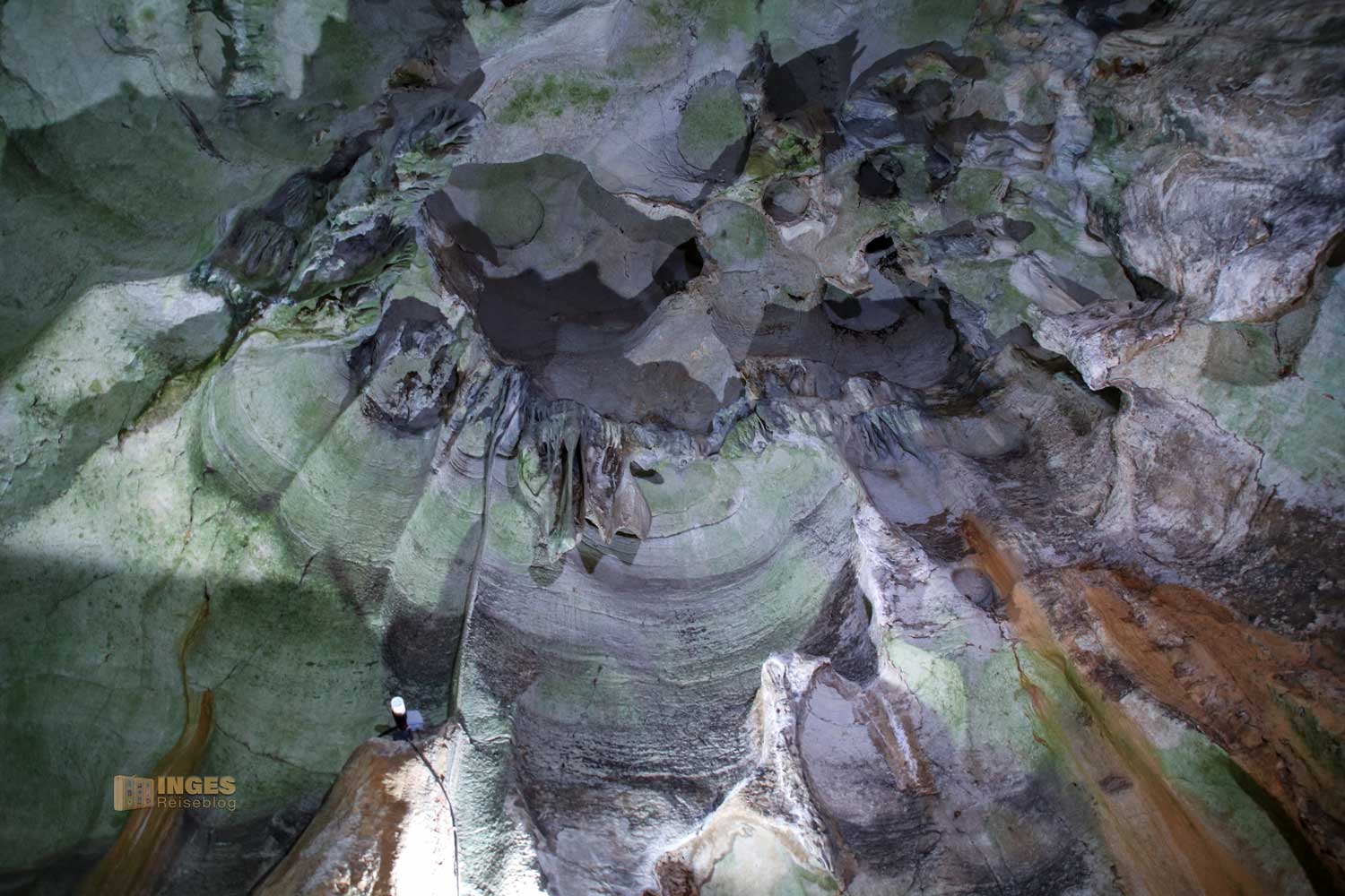 an der mein Enkel seine Freude hätte. Er kann mir sämtliche Dinosaurier und Urmenschen mit Namen nennen und es wäre für ihn sicher megainteressant sich die Höhle, die vor ca. 150 Millionen Jahren entstand anzuschauen. Stand ja schon ich ganz fasziniert in der bis zu 50 Meter hohen Höhle.