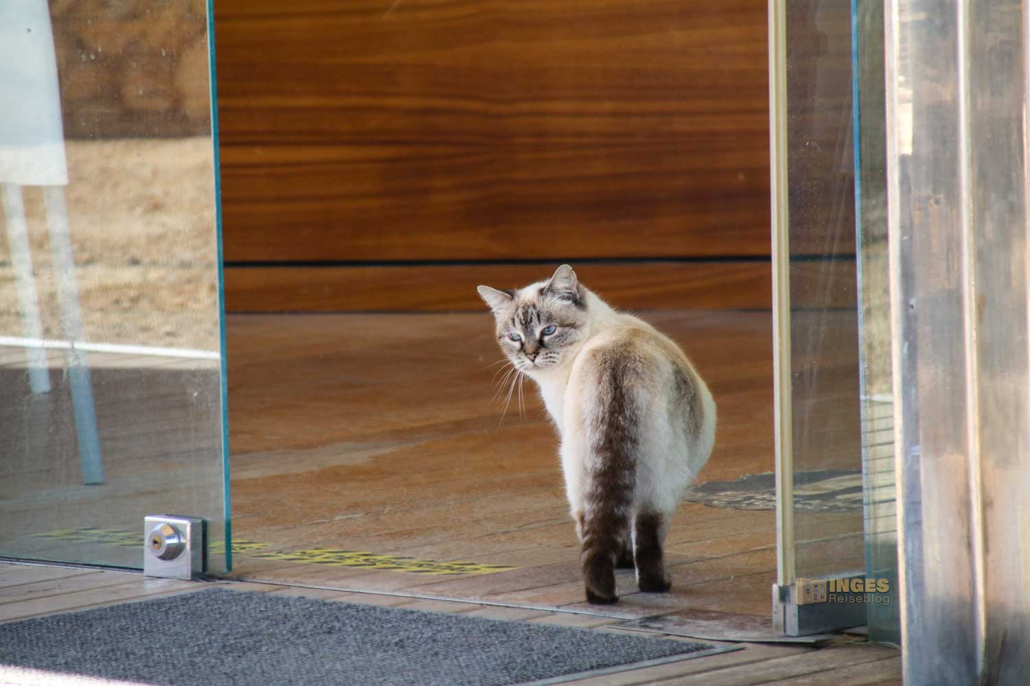 Überall in Küstennähe sind sie zu finden - Möwen. Für mich mit Abstand betrachtet ein herrliches Fotomotiv, und ich kann da einige Zeit stehen um Schnappschüsse zu bekommen Wer allerdings mit Essen in der Hand dasteht, der sollte sie tunlichst im Auge haben. Ansonsten sieht er sein Essen fliegen. Auch hier oben auf dem Berg, denn eine Gaststätte lädt hier zu einer Rast ein. Auch für mich? Scheint die Katze zu denken, die unbemerkt versucht sich einzuschleichen Ich liebe solche Schnappschüsse.