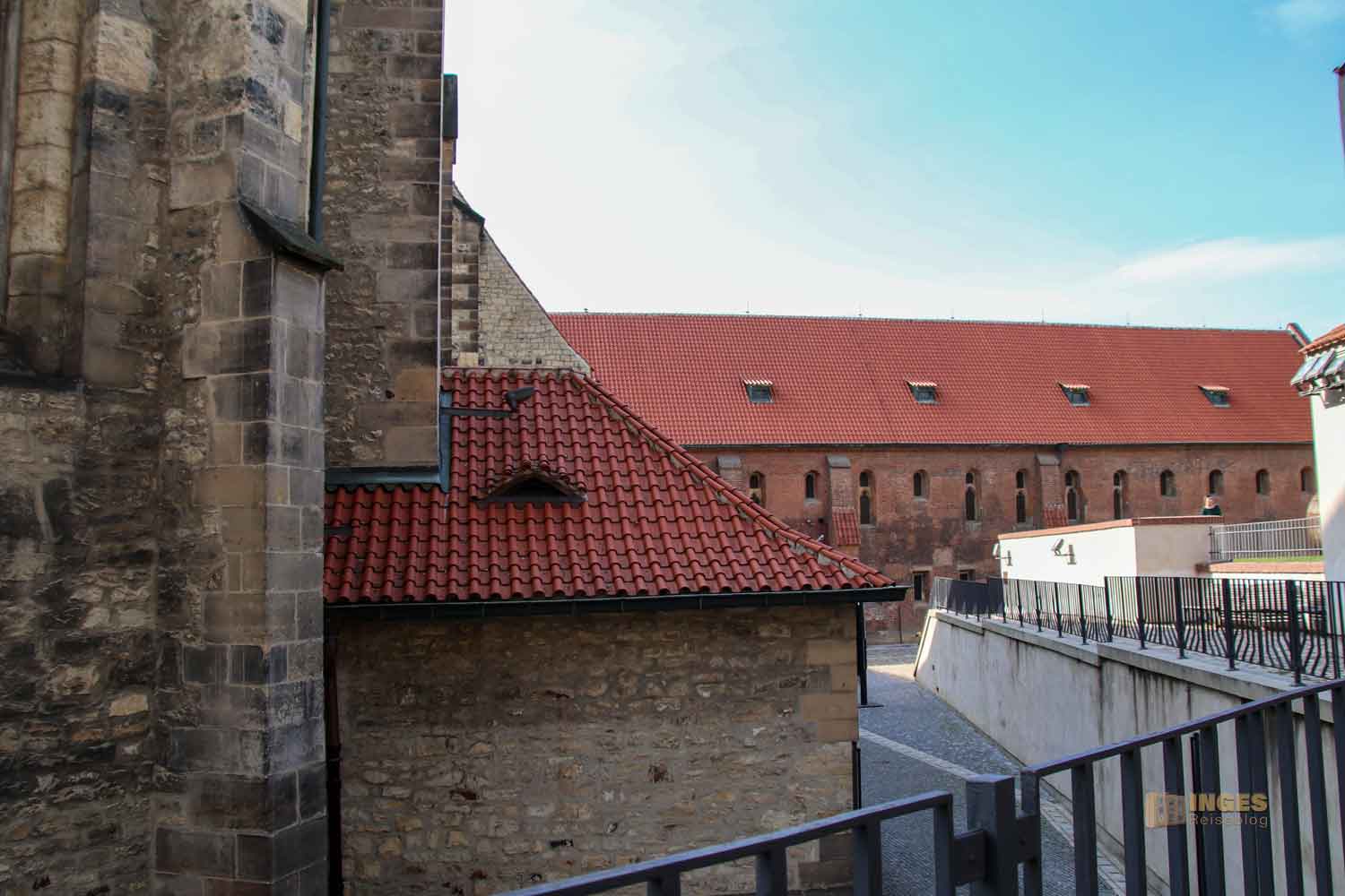 Zurück aber wieder in Prag. Da sieht das Agneskloster daneben richtig klein dagegen aus. Aber, zur Entstehungszeit des Klosters war das große Gebäude noch nicht mal in den Köpfen jeglicher Planer.