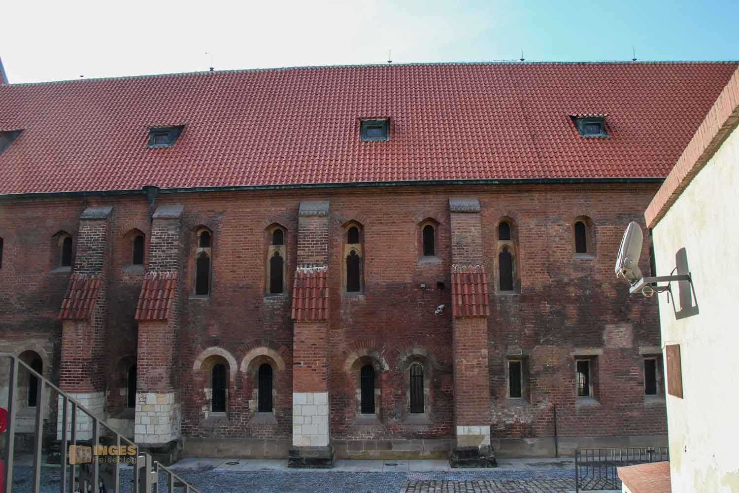 das bereits im zweiten Gebäudekomplex des Klosters ist. Dieses lange Gebäude ist das älteste erhaltene Backsteingebäude in Prag.