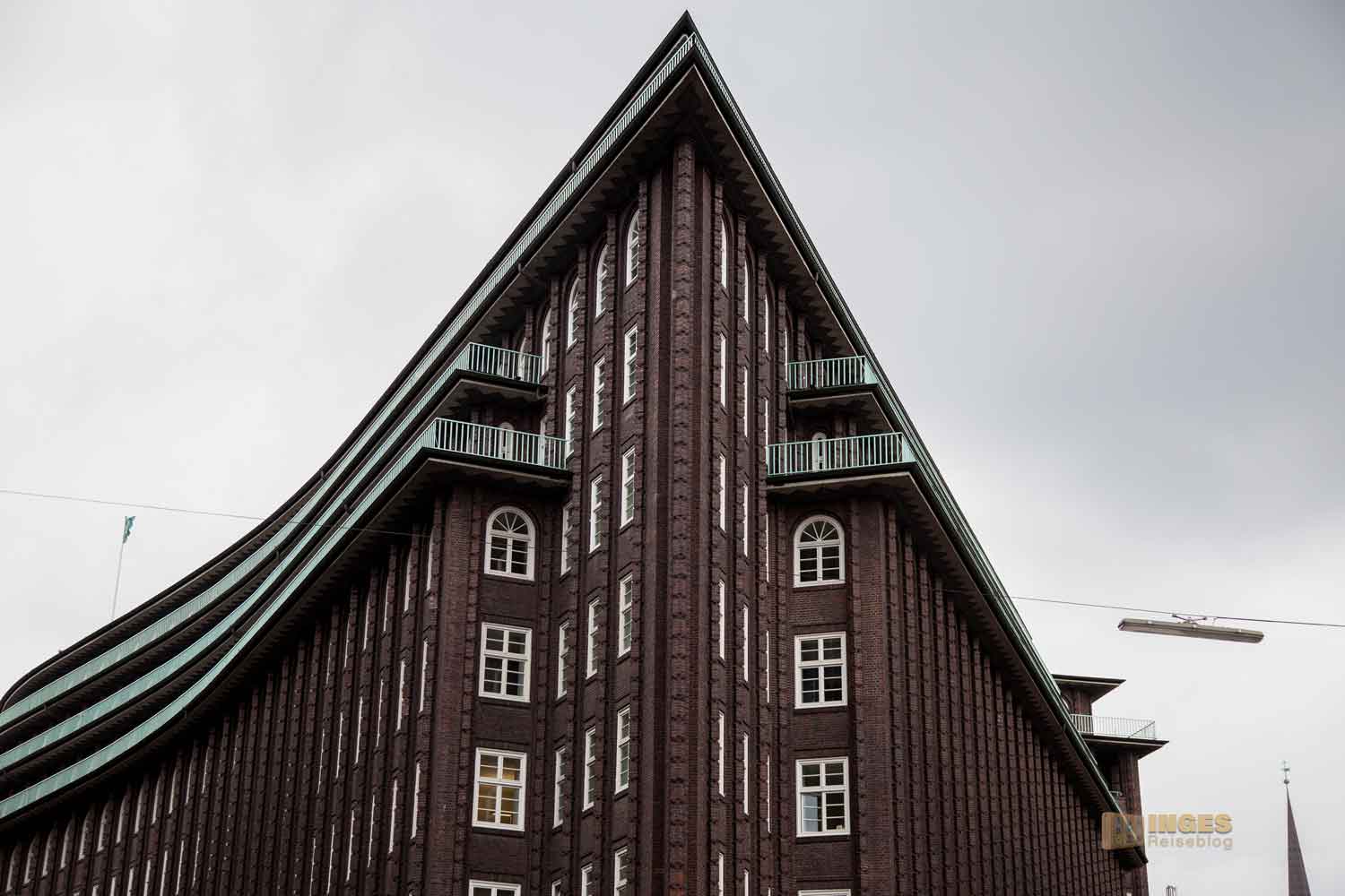 Große Klinkerhäuser in einem Weltkulturerbe-Viertel - dann befindet man sich im Kontorhausviertel in Hamburg, mit seinem wohl bekanntesten Kontorhaus, dem Chilehaus.