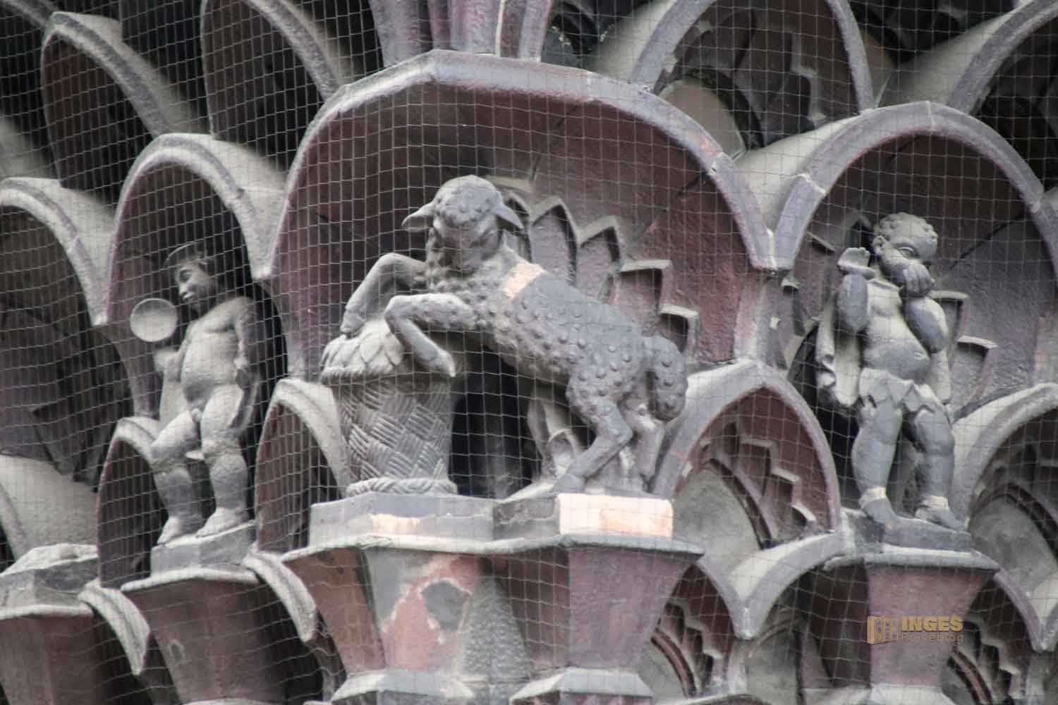 Auch hier lohnt sich ein Blick zur Fassadengestaltung, die 1996 von Lothar Fischer geschaffen wurden und sich "Enigma-Variationen" nennt. Die ursprünglichen Figuren dürfen heute im Keller ihr Dasein fristen. Obwohl wir Schoki lieben, haben wir auf einen Besuch im Museum verzichtet.