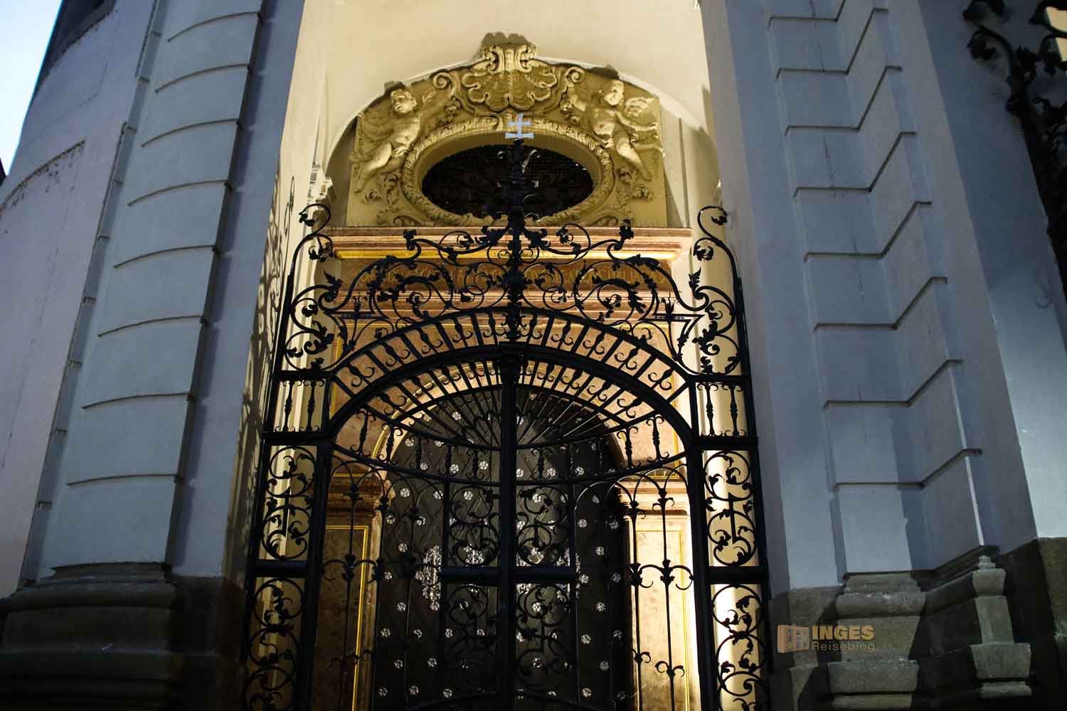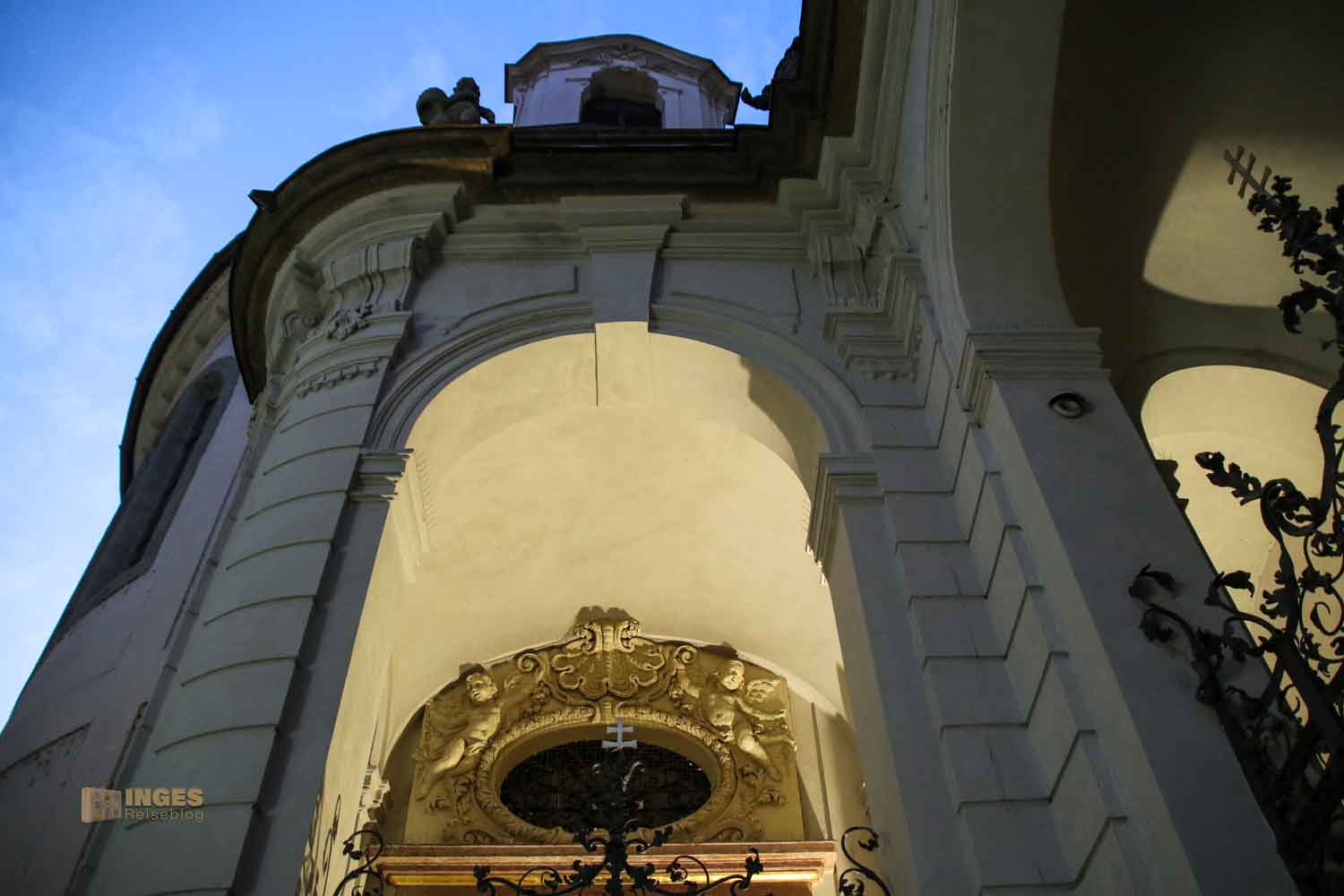Nach ihr wurde der gesamte Gebäudekomplex benannt. Die Dominikaner legten den Grundstein für diese Kirche, die in den Jahren ab 1711 als Barockkirche aufgebaut wurde. Von außen ist sie eher schlicht. Wüsste man nicht, dass sich hier eine Kirche befindet, man könnte daran vorbeilaufen. Wir sind zwar im Juni 2020 nicht achtlos an ihr vorbei gelaufen, aber jedesmal waren die prachtvollen Gittertüren fest verschlossen. Besichtigung unmöglich. Dabei kann sich das Innere der Kathedrale wirklich sehen lassen - sie ist eine best ausgestatteten Barockkirchen in Prag.
