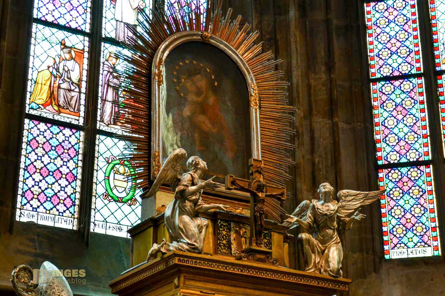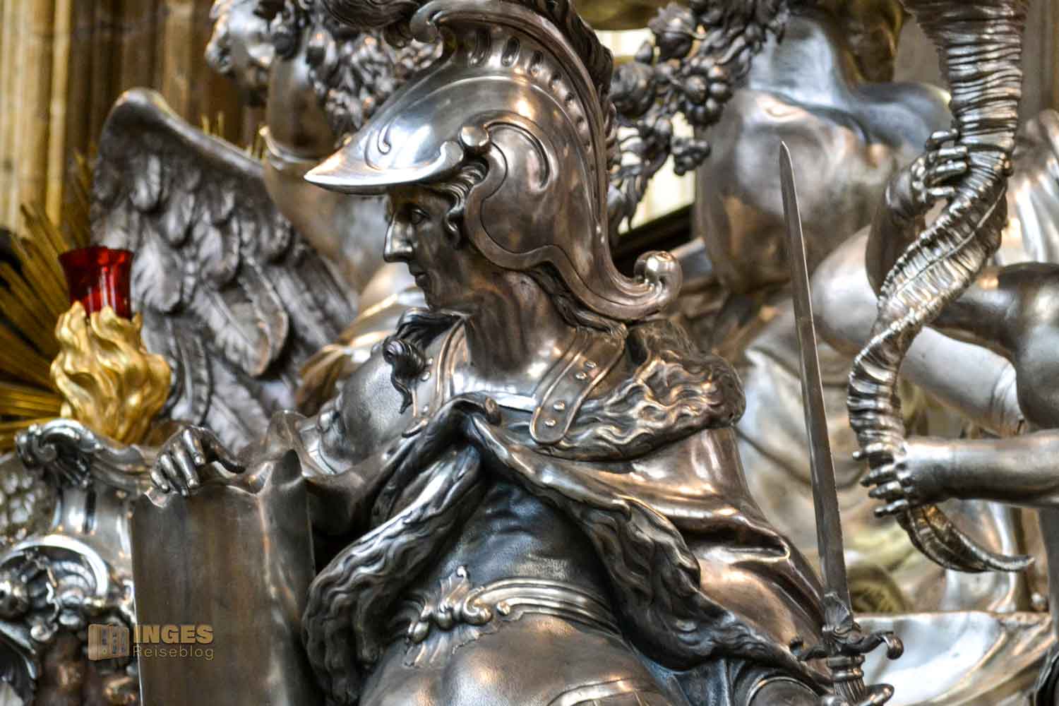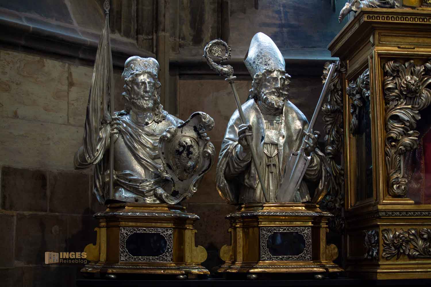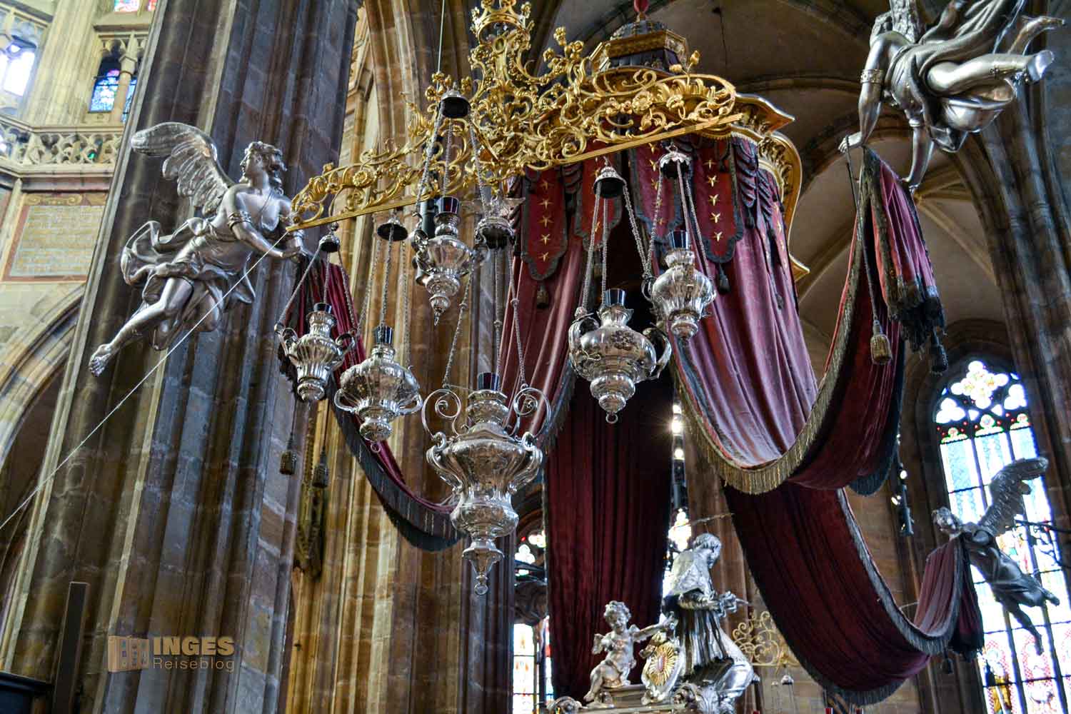 Dieses prachtvolle Grabmal ist mir bereits auf der gegenüberliegenden Seite bei meinem Rundgangs durch den St. Veits Dom aufgefallen. Wir hatten an unserem Besichtigungstag das unfassbare Glück, dass kaum Besucher im St. Veits Dom waren und die Sicht nach allen Seiten so gut wie immer frei war. Das hat natürlich mein Fotografenherz zum Purzelbaum schlagen veranlasst. Ihr merkt mit dem Bericht hier, so wie auch beim Gesamtbeitrag zum St. Veits Dom, einmal wieder, dass ihr auch auf einem Fotoblog gelandet seid.