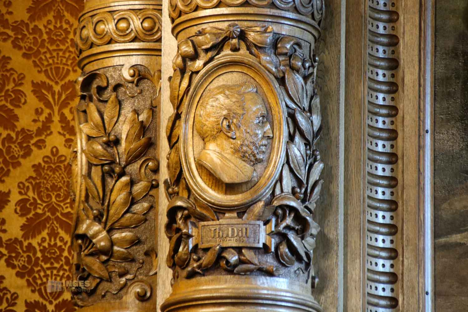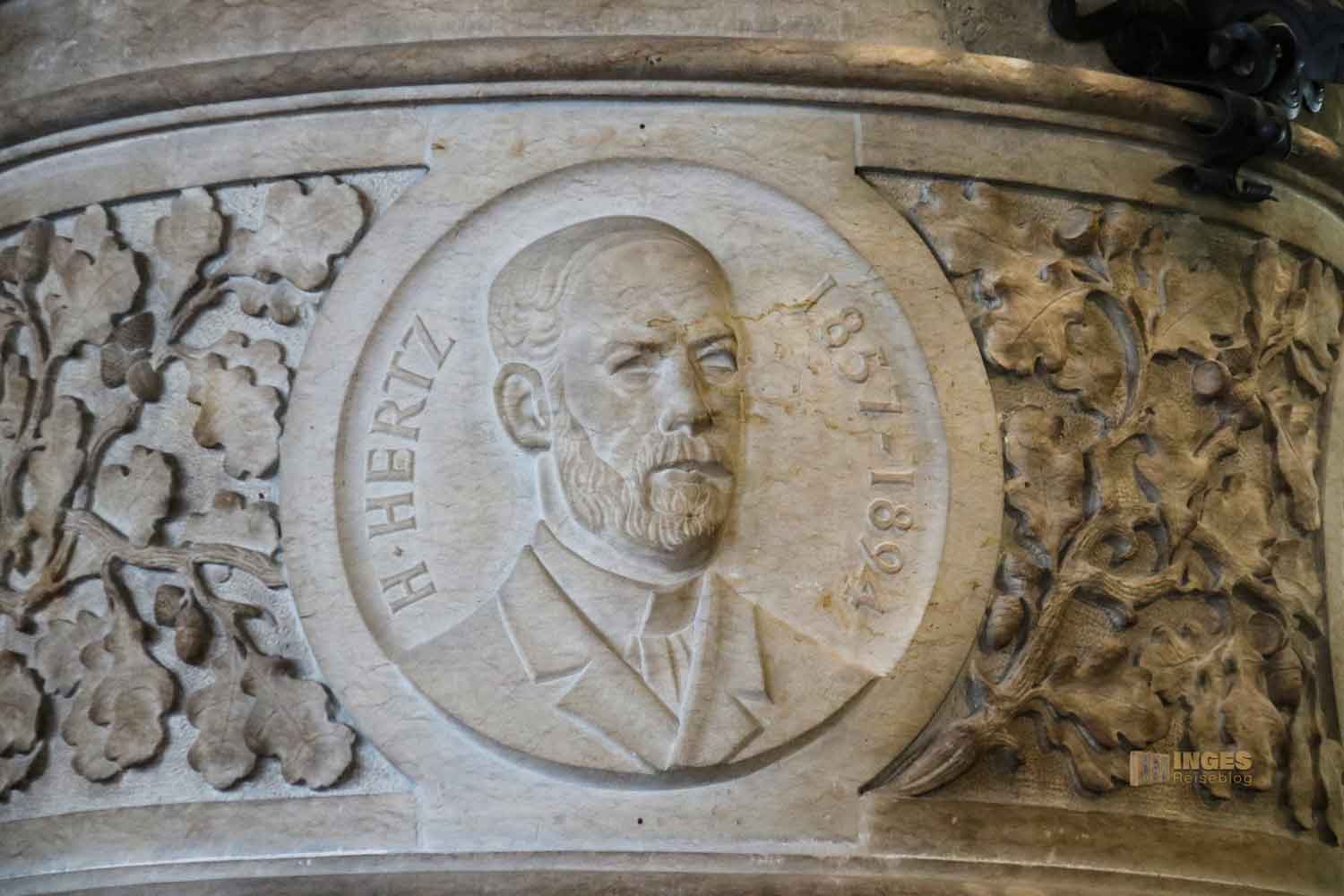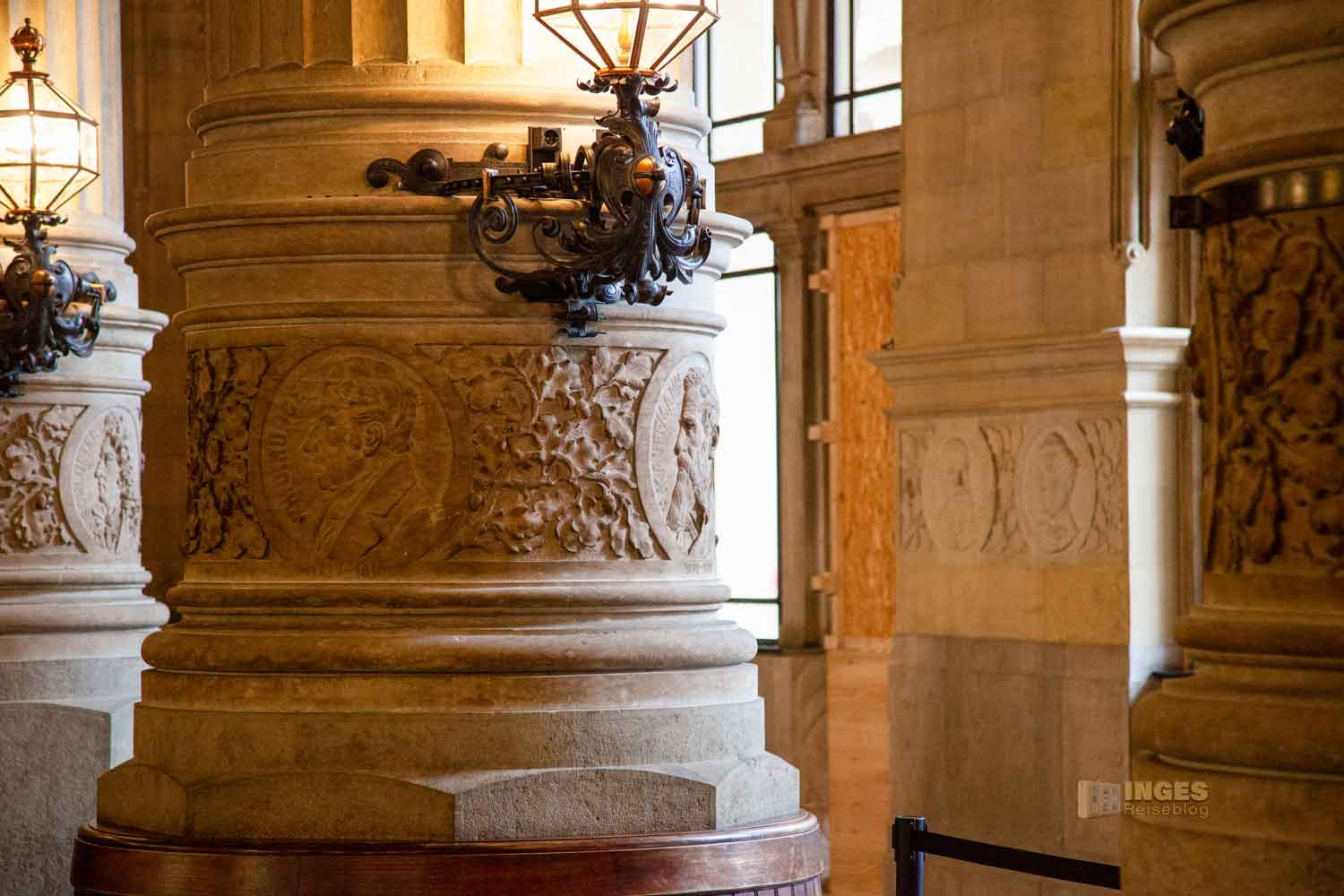 Die Medaillons an den Dielensäulen im Hamburger Rathaus