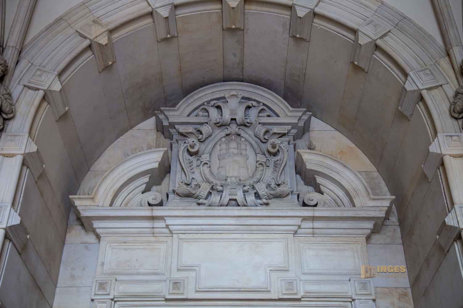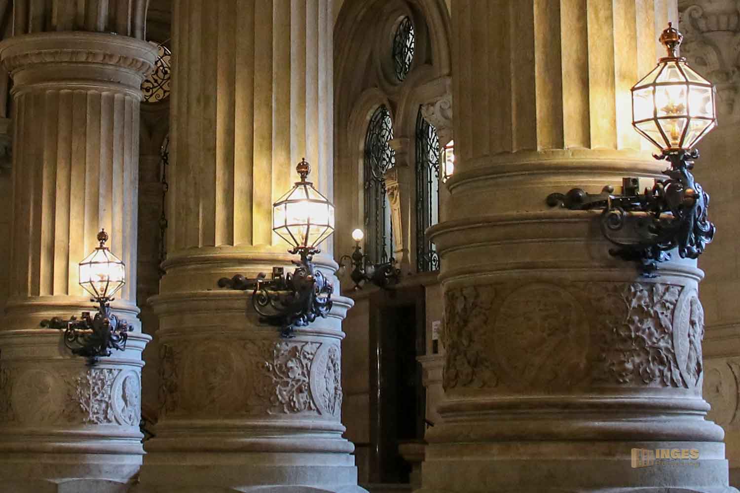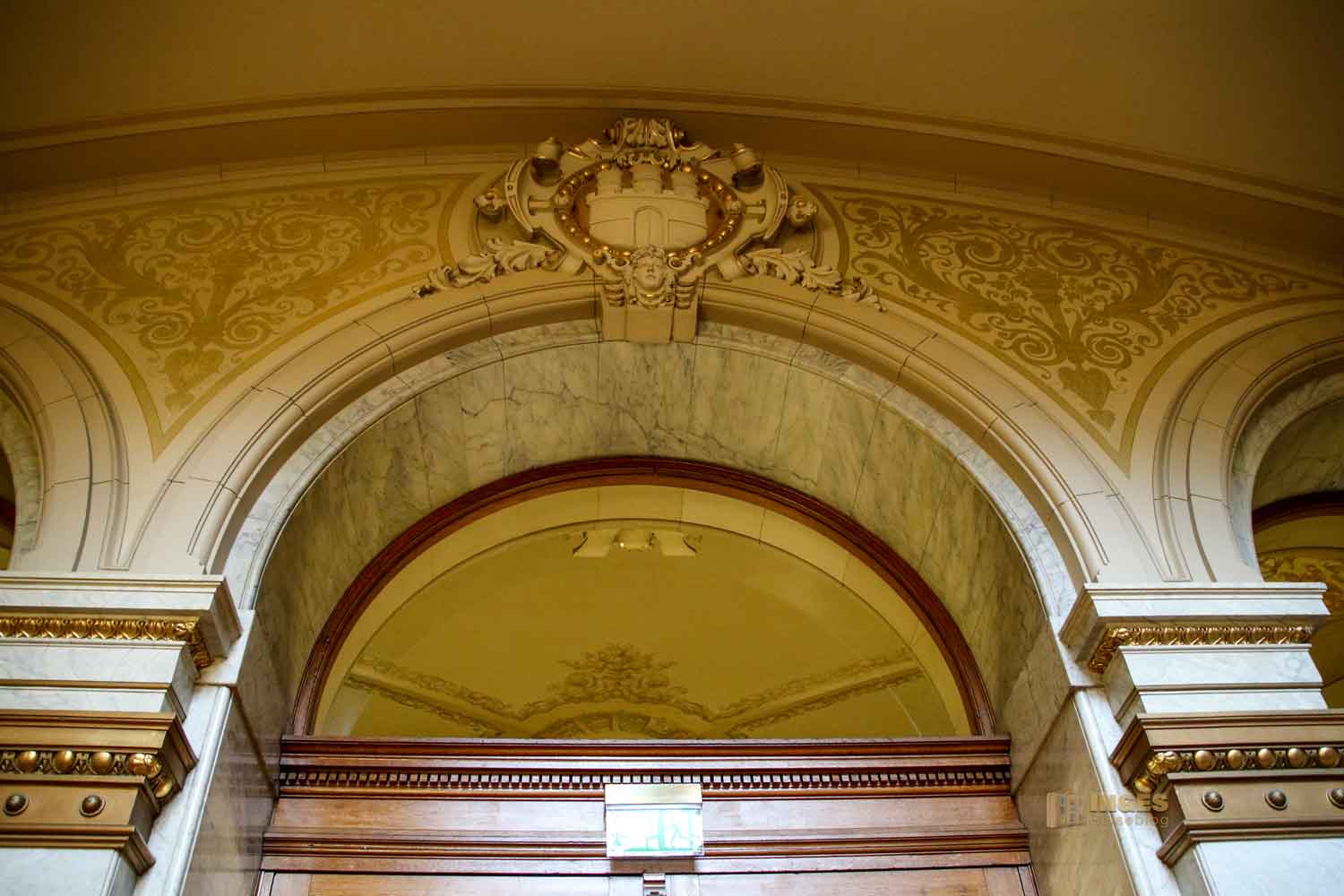 Die Medaillons an den Dielensäulen im Hamburger Rathaus