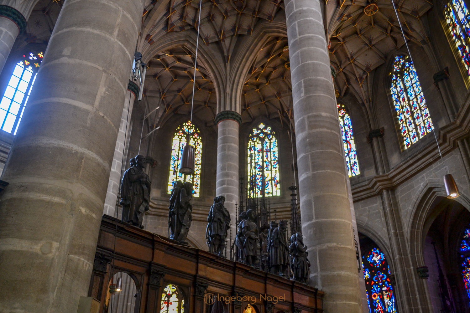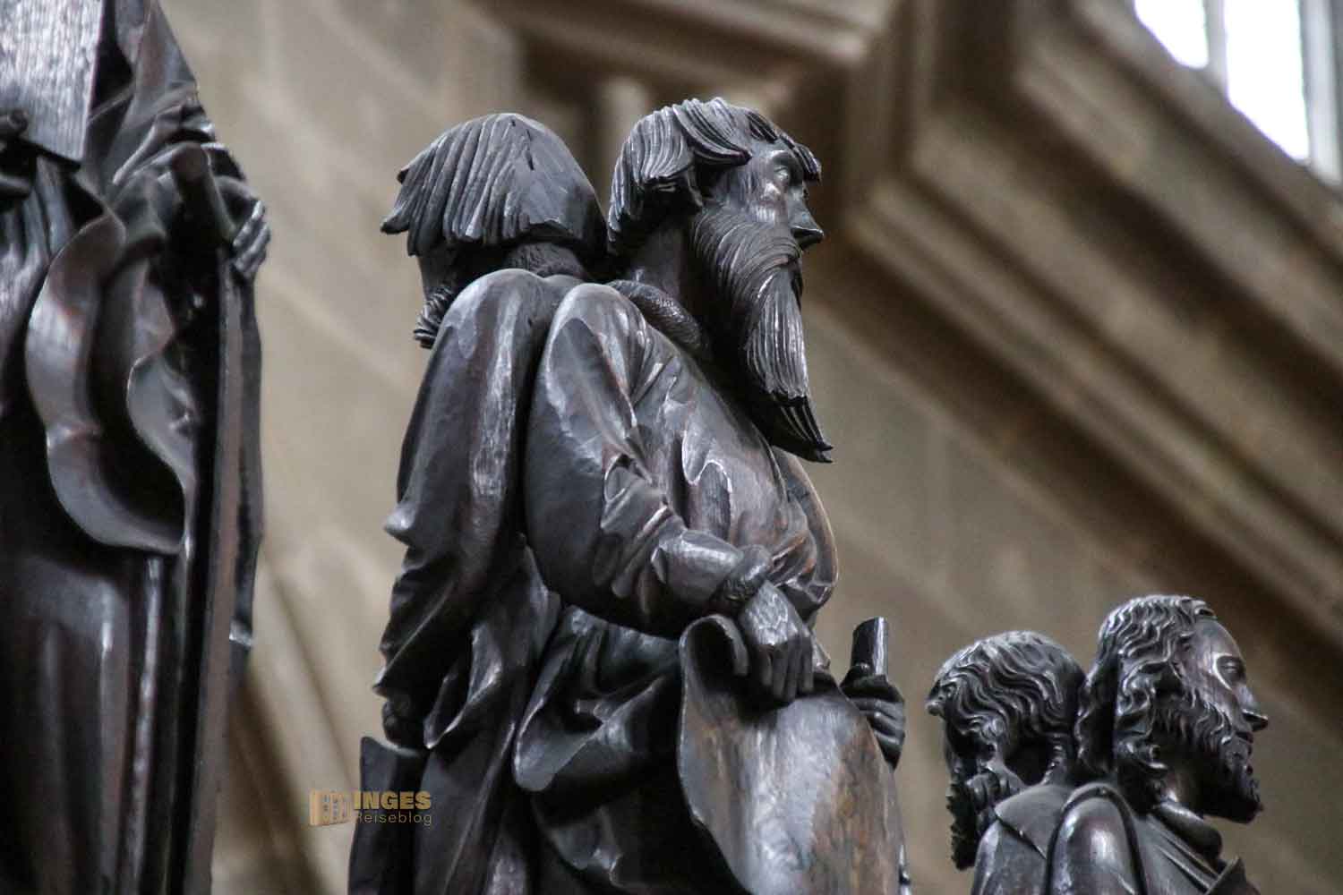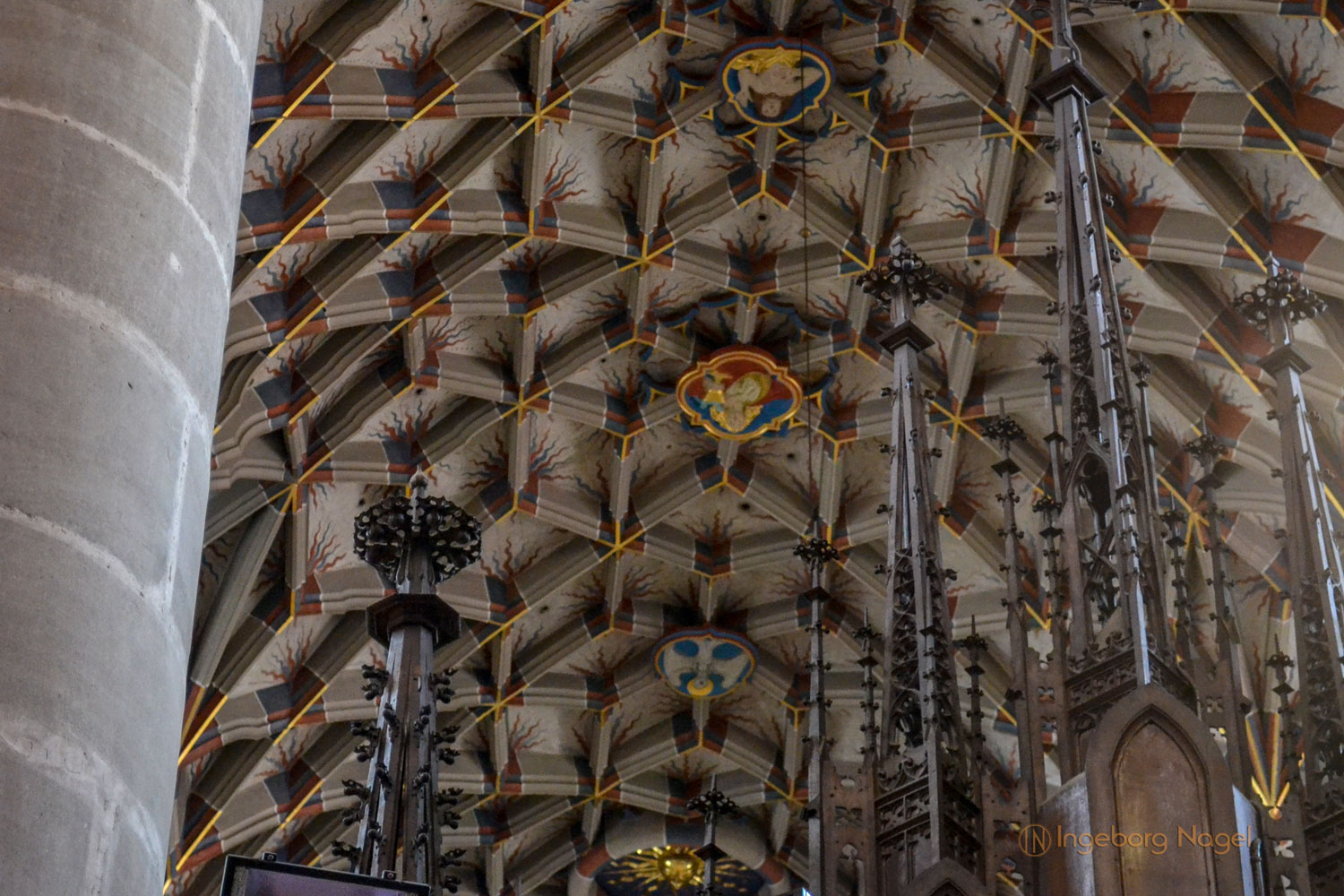 Den Rest an Schlusssteinen dürft ihr selber entdecken. Ich muss euch nämlich noch ein Schätzchen in der Kirche zeigen, das aufgrund dem Spender Sebald Schreyer, ja der vom Sebaldusaltar, entstanden ist -